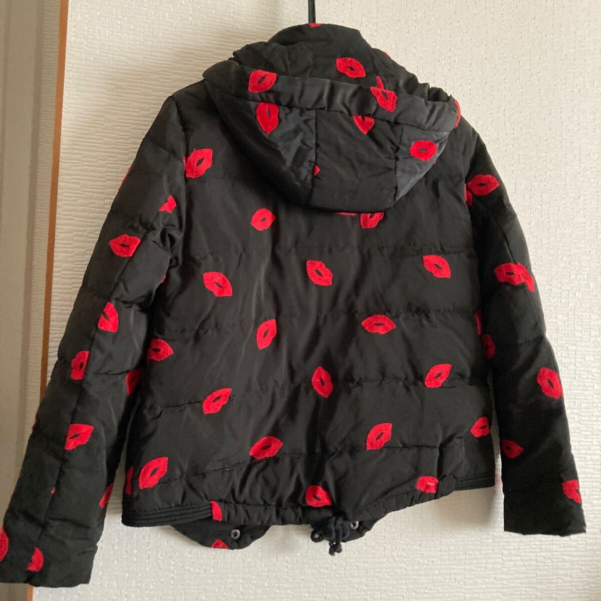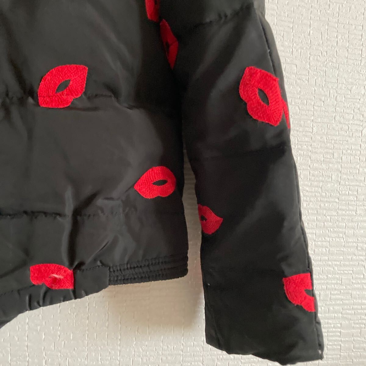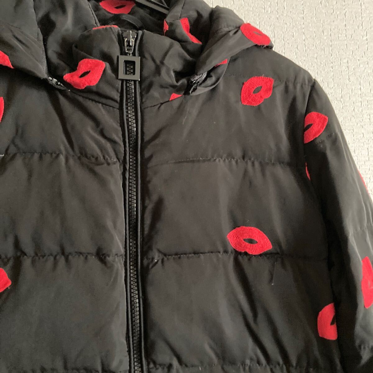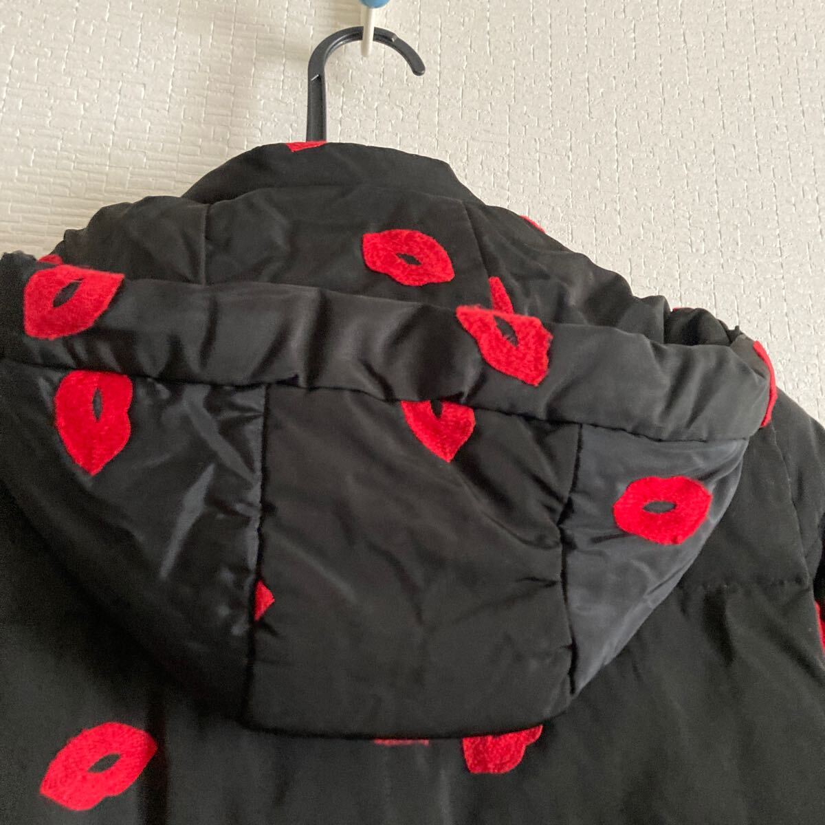 リップ柄の刺繍が散りばめられていて大変かわいいダウンジャケットです。フードは取り外し可能です。タグなし。