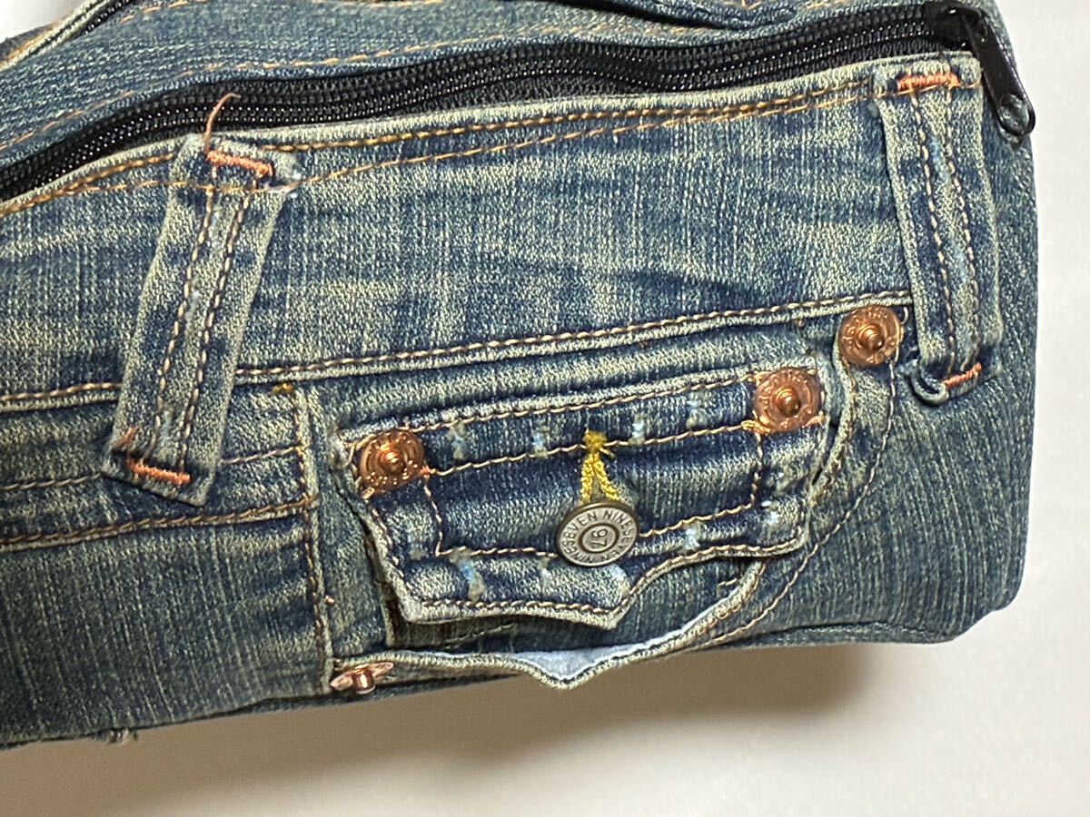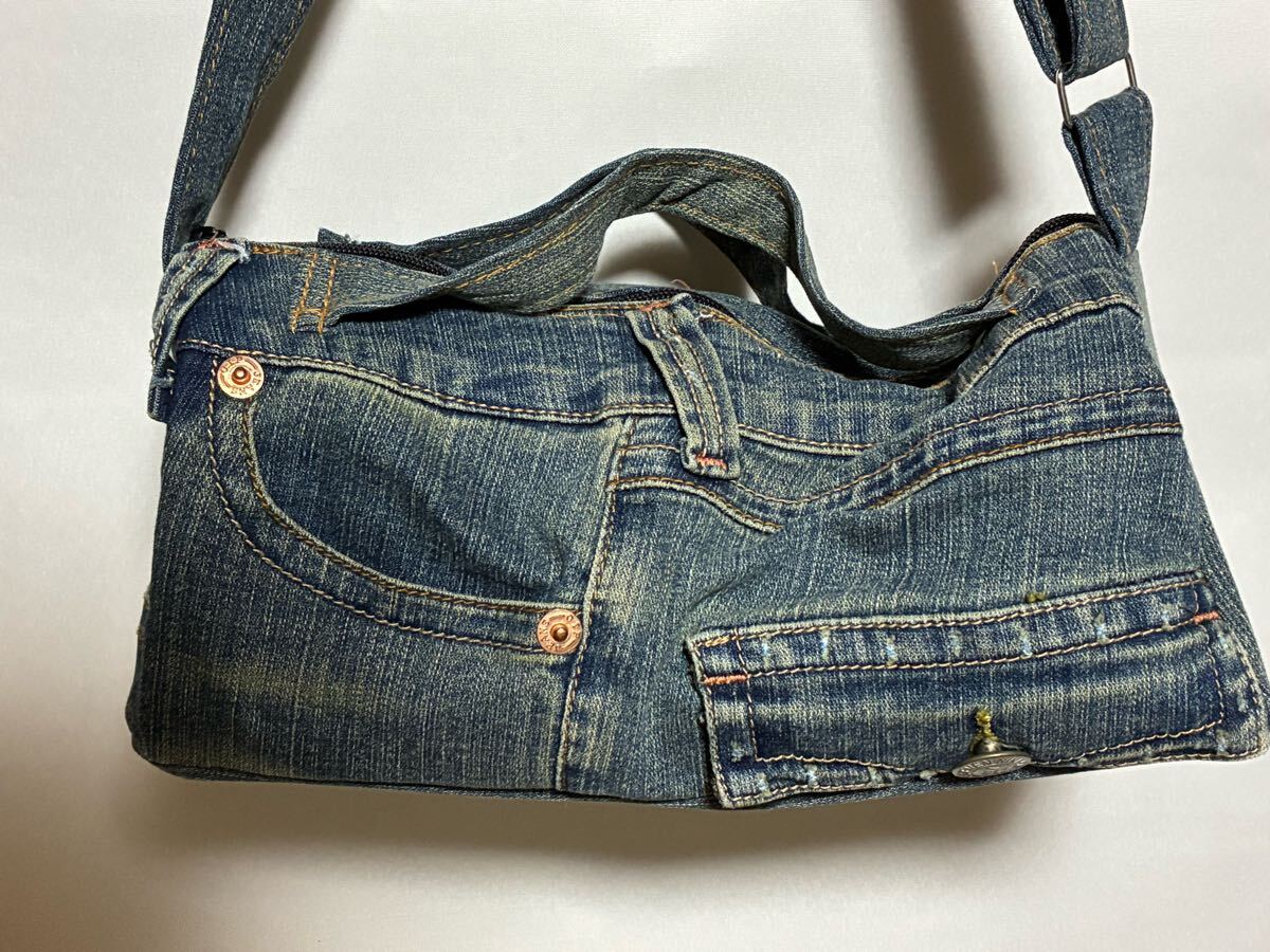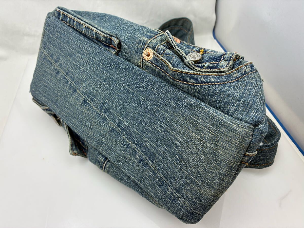 ジーンズ リメイクバッグ デニム ショルダー バッグ 約幅30cm×縦12cm×マチ11cm コンパクト バック ハンドメイド 自宅保管品 送料込み