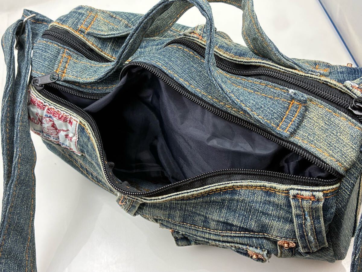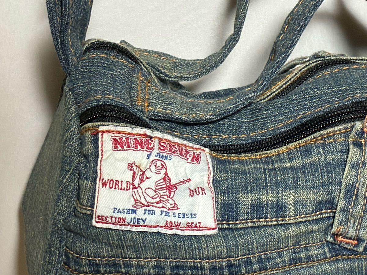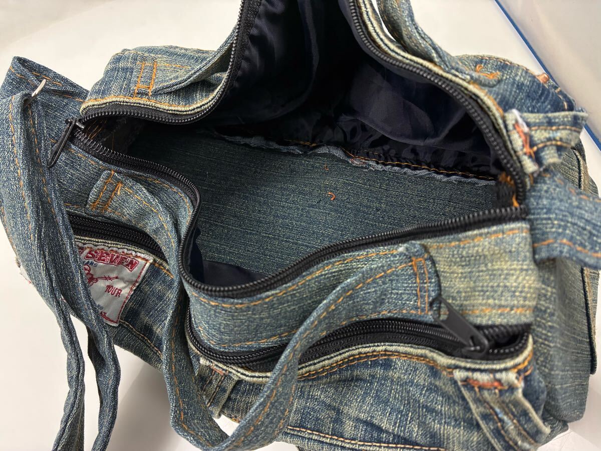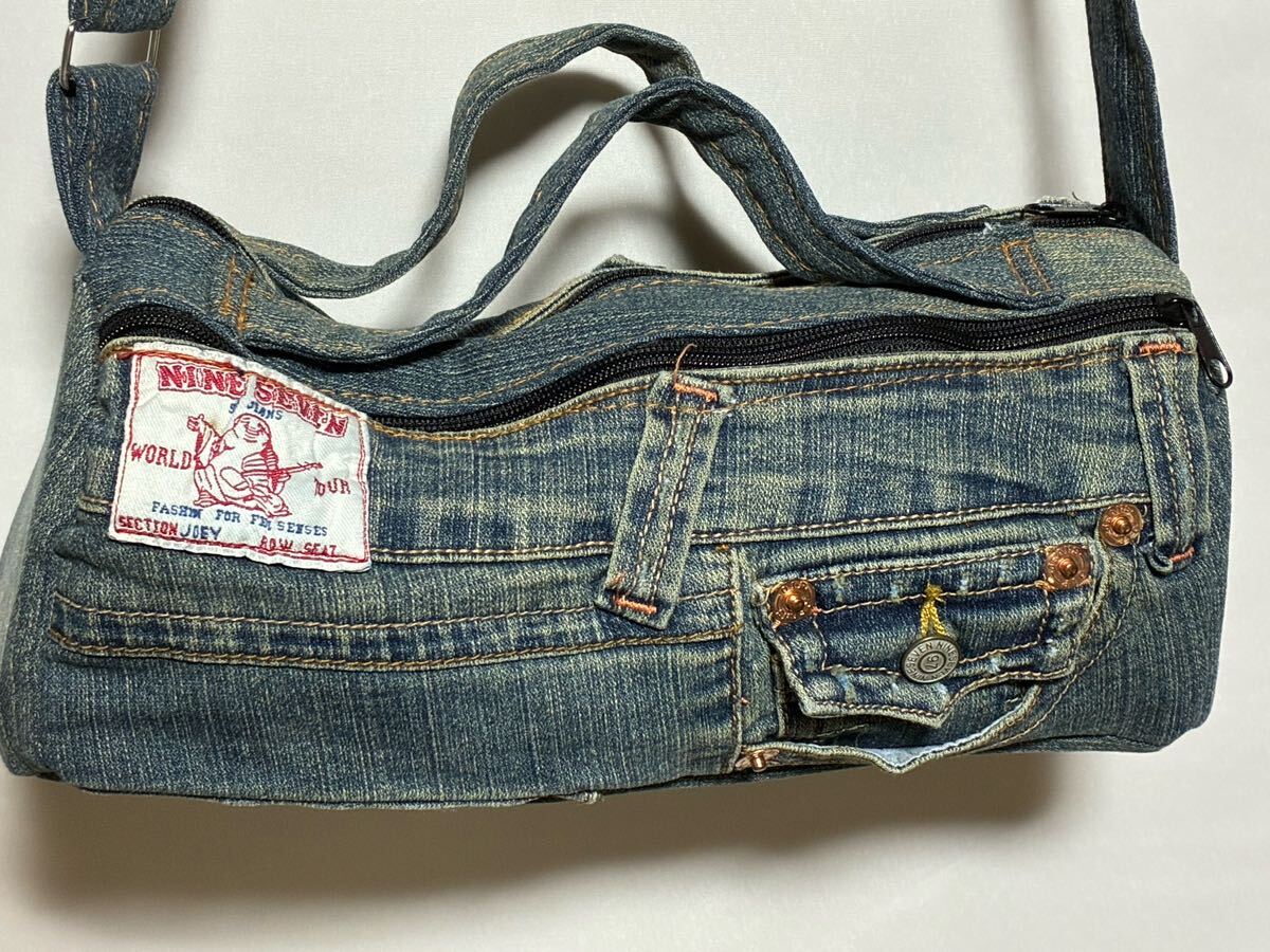 ジーンズ リメイクバッグ デニム ショルダー バッグ 約幅30cm×縦12cm×マチ11cm コンパクト バック ハンドメイド 自宅保管品 送料込み