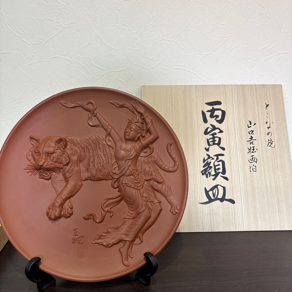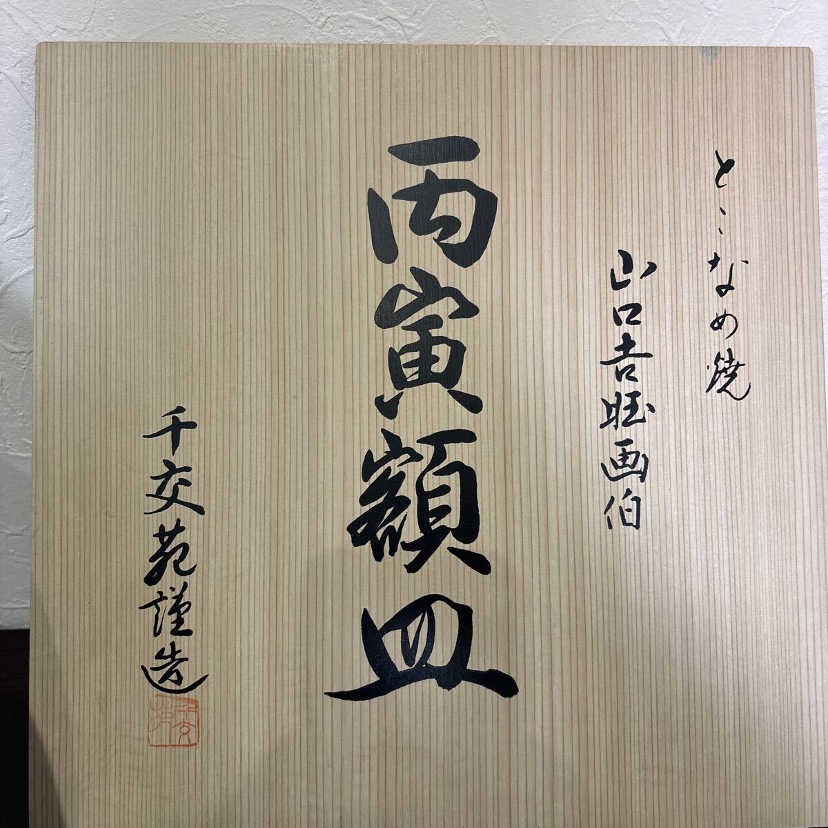 山口吉旺画伯 常滑焼 木箱付き 両寅額皿になります。