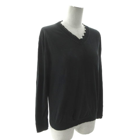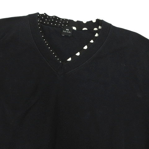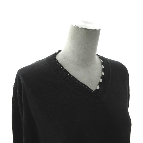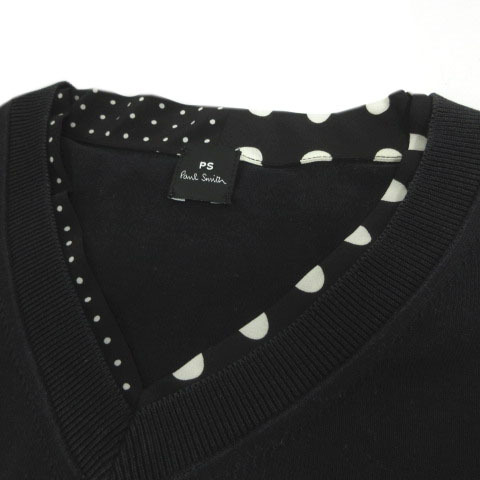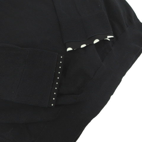 ポールスミス PAUL SMITH ニット Vネック レイヤード風 長袖 シルク混 ドット ブラック 黒 ホワイト 白 M レディース
