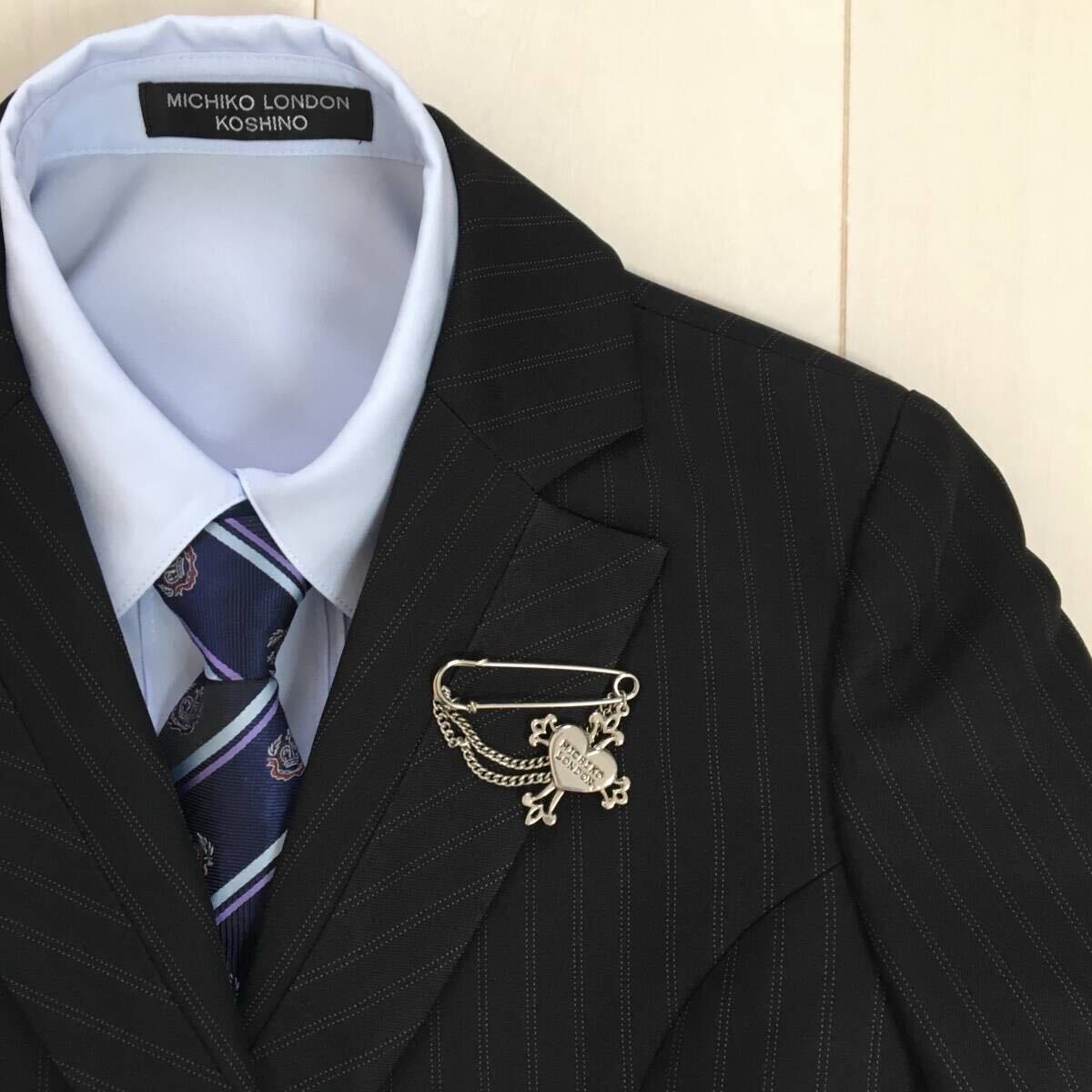 ジャケット、スカート、ブラウス、ネクタイ、バッジの5点セットです。