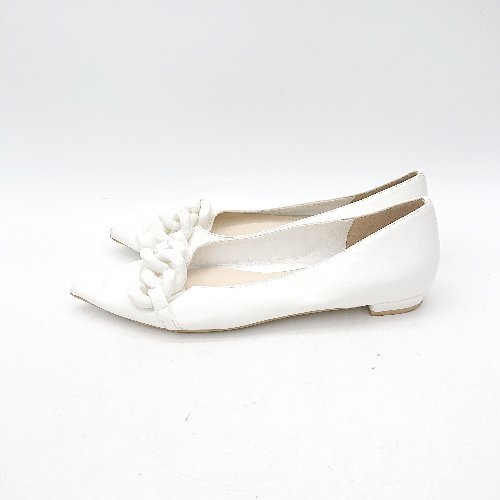 ◇ Θ Odette e Odile オデット エ オディール チェーン装飾 フラット パンプス サイズ24 1/2 ホワイト レディース E