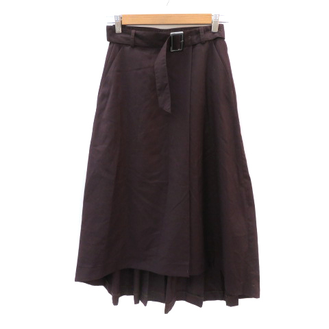 ハレ HARE フレアスカート ミモレ丈 ウエストベルト付き F バーガンディ /YK16 レディース