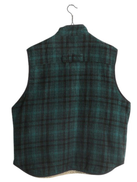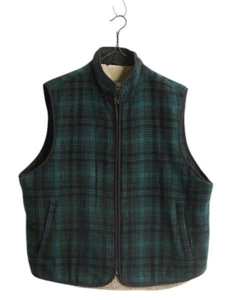 商品名 | エルエルビーン チェック ウール ベスト メンズ L / LLBEAN 裏 ボア パイル フリース ライナー付き フルジップ ハイネック 重ね着 ツートン |