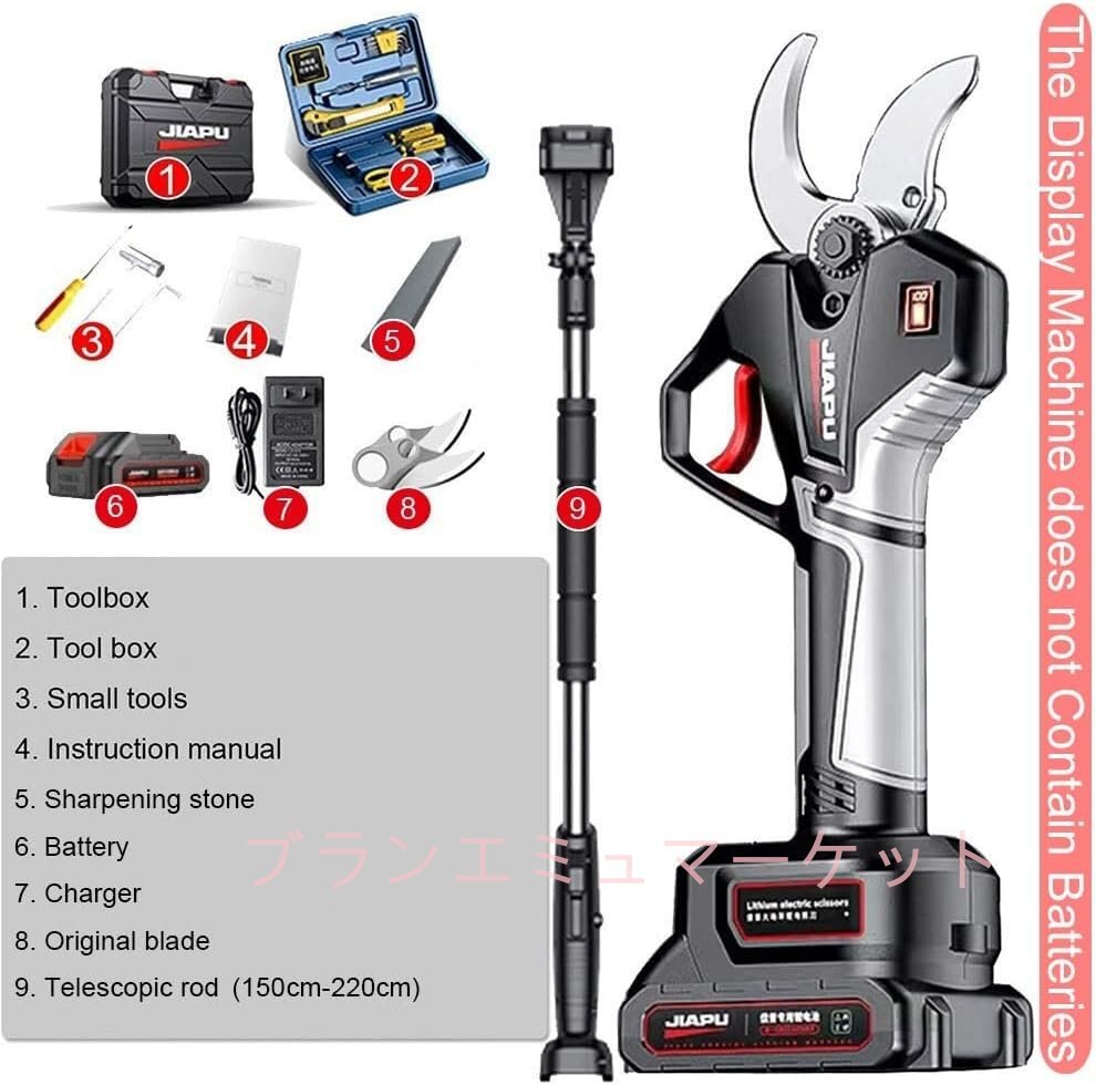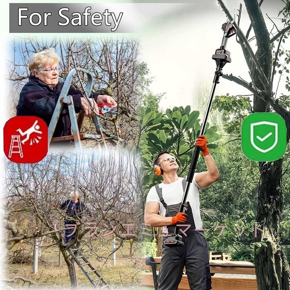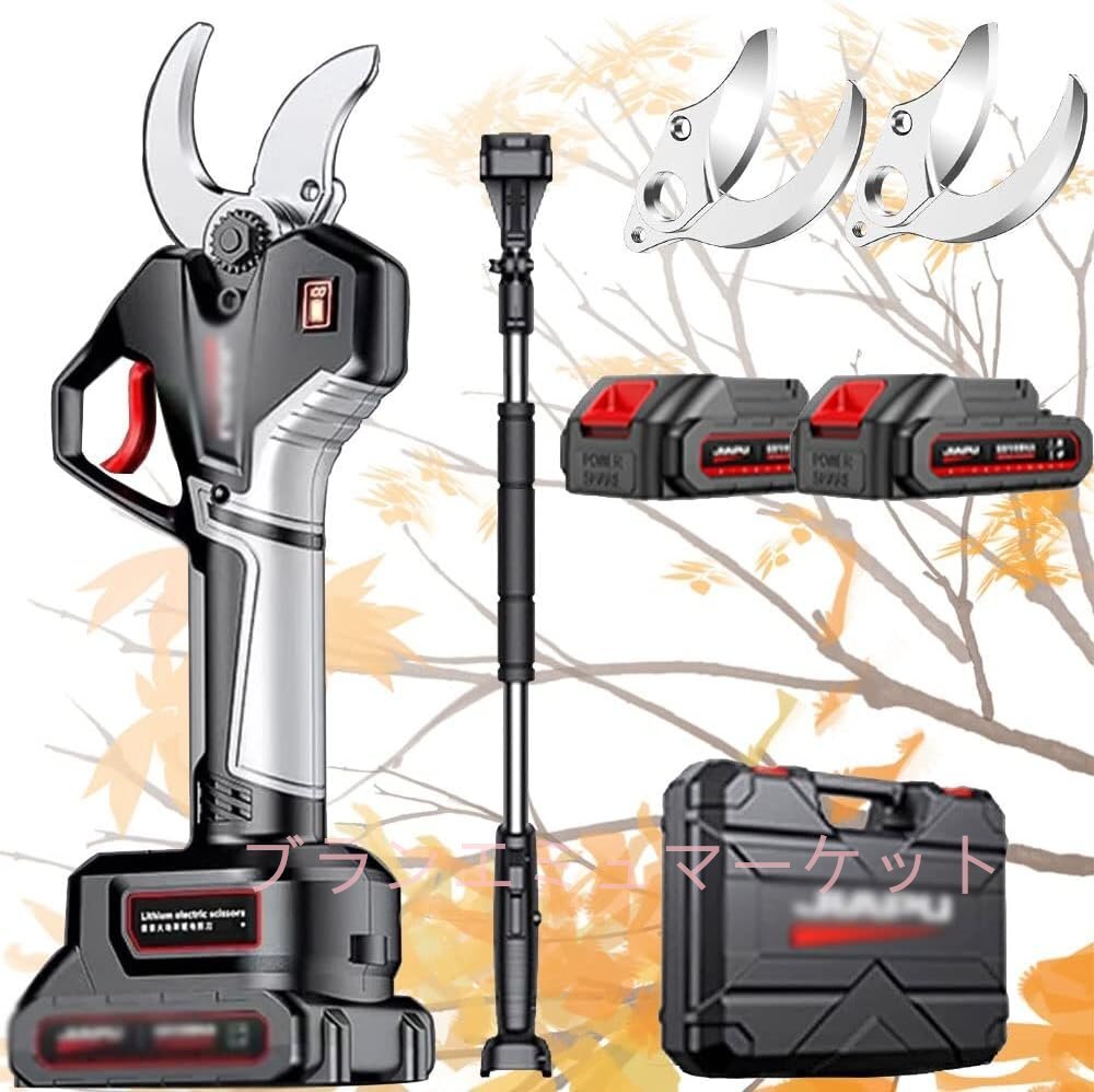 延長ポール付き 充電式剪定ばさみ コードレス電動枝切りバサミ プロ 園芸用剪定用具 切断直径50mm 延長ポールあり 庭木枝切り 果樹用