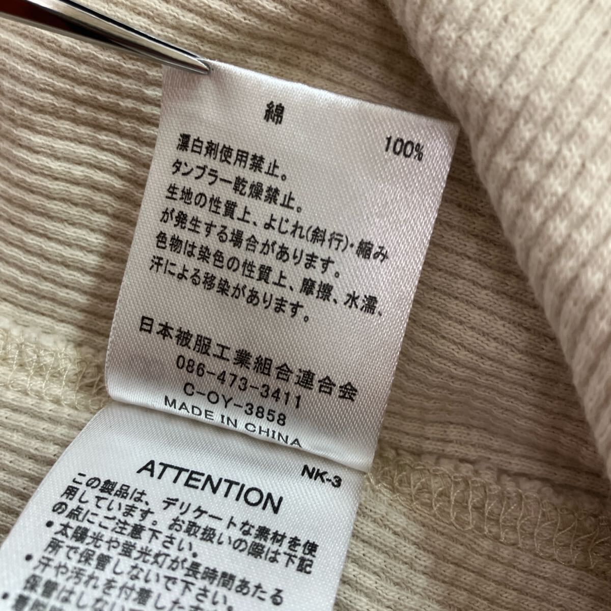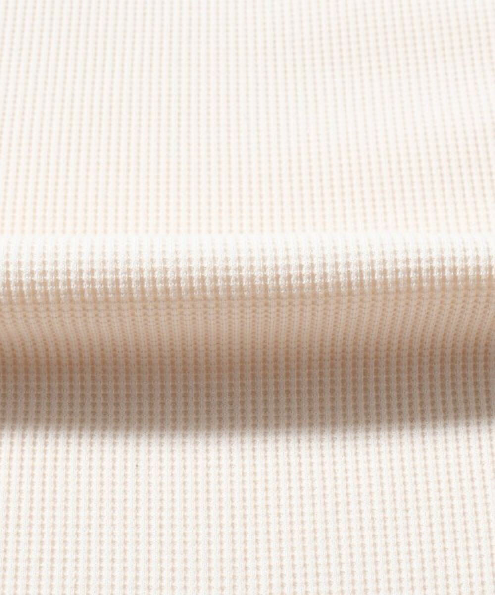 凹凸のあるワッフル素材のためふんわりした着心地で、衿ぐりにはガゼットをイメージしたVラインのステッチがポイントに。