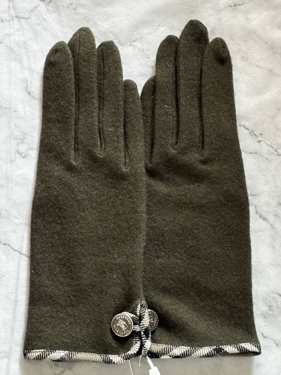 <新品・未使用> BURBERRY BLUE LABEL カシミヤ混 グローブ カーキ 日本製 手袋