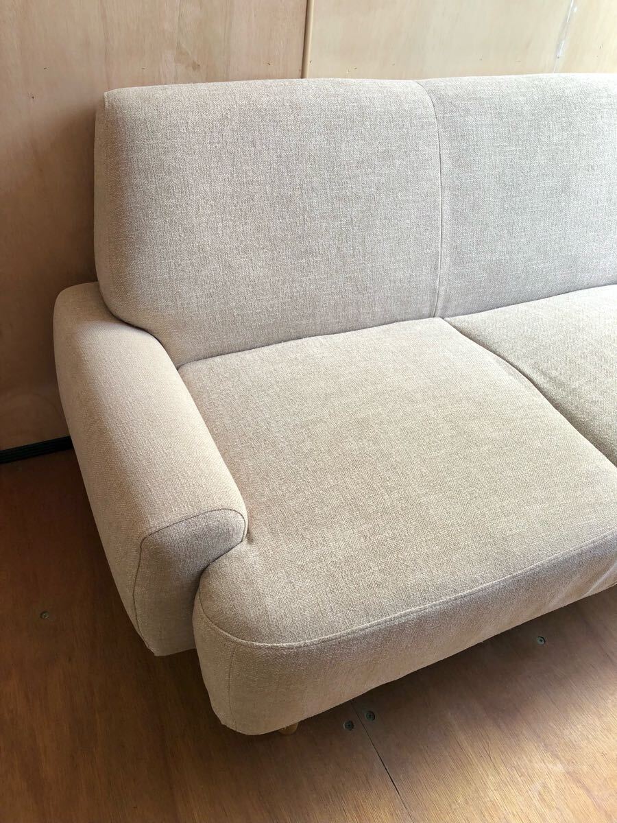 丸みのあるフォルムがかわいいナチュラルな印象のソファ。高めの背もたれに、広くて奥行きのある座面でゆったりとした座り心地に仕上げました。腰当クッションを抱えて座ったり、思い思いのスタイルでくつろぐことができます。