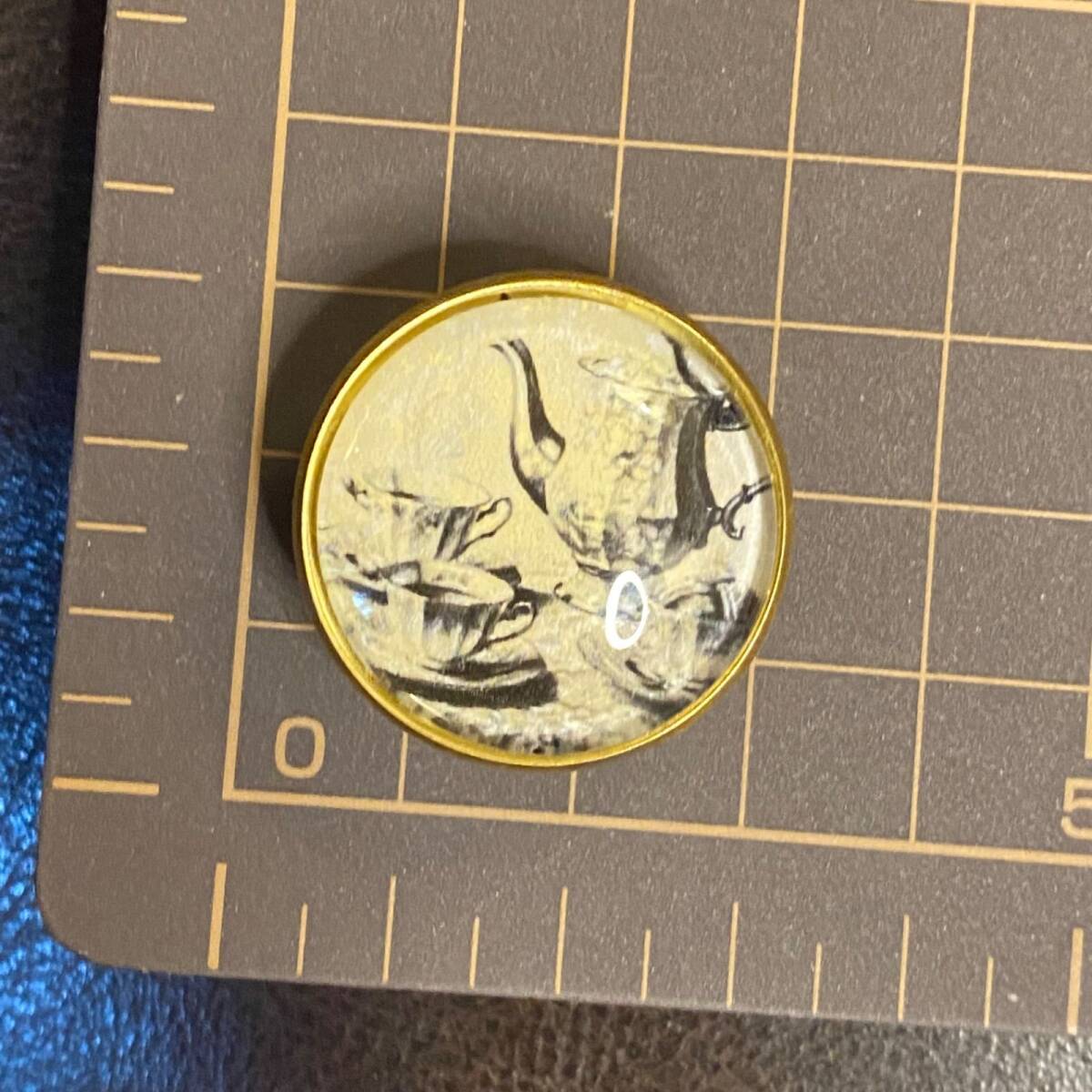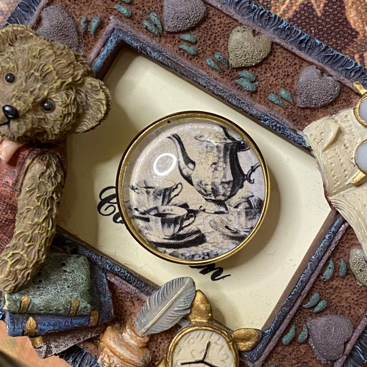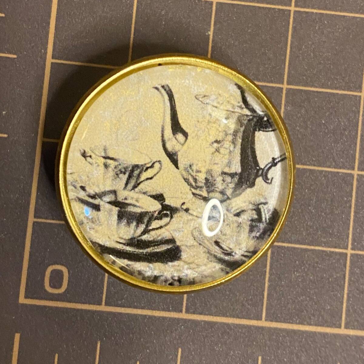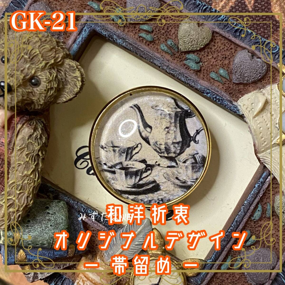 【着物 ハンドメイド ガラス 帯留め|和洋折衷のアクセントに オリジナルデザイン 静謐なる午後のひととき──時を超えるティータイム GK-21】