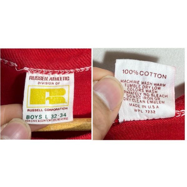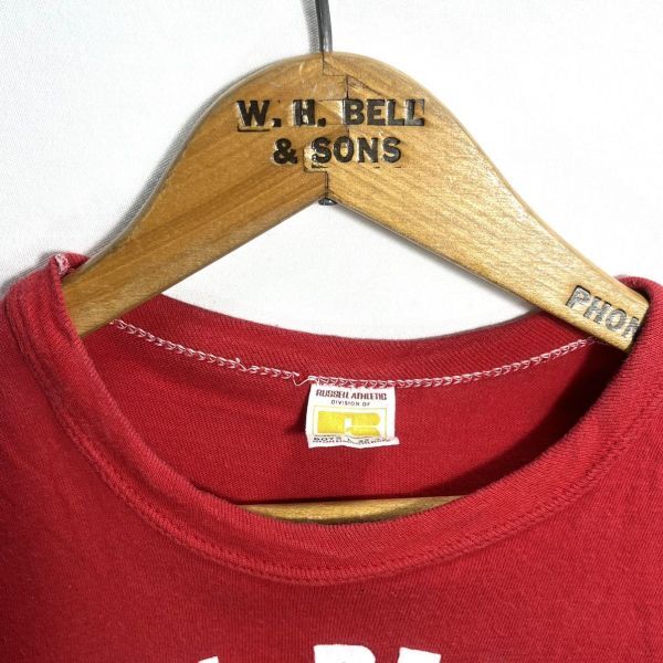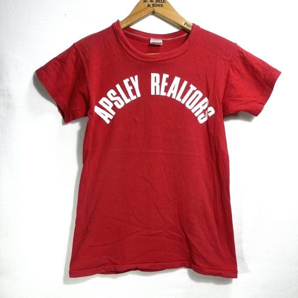■ BOYS用 60s - 70s ビンテージ USA製 RUSSELL ラッセル ” APSLEY REALTORS ” アーチロゴ シングルステッチ Tシャツ レッド アメカジ ■