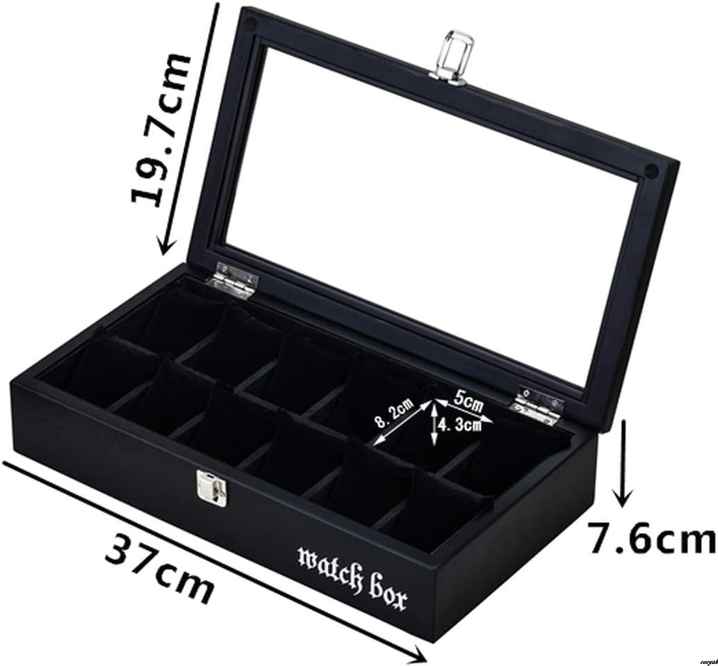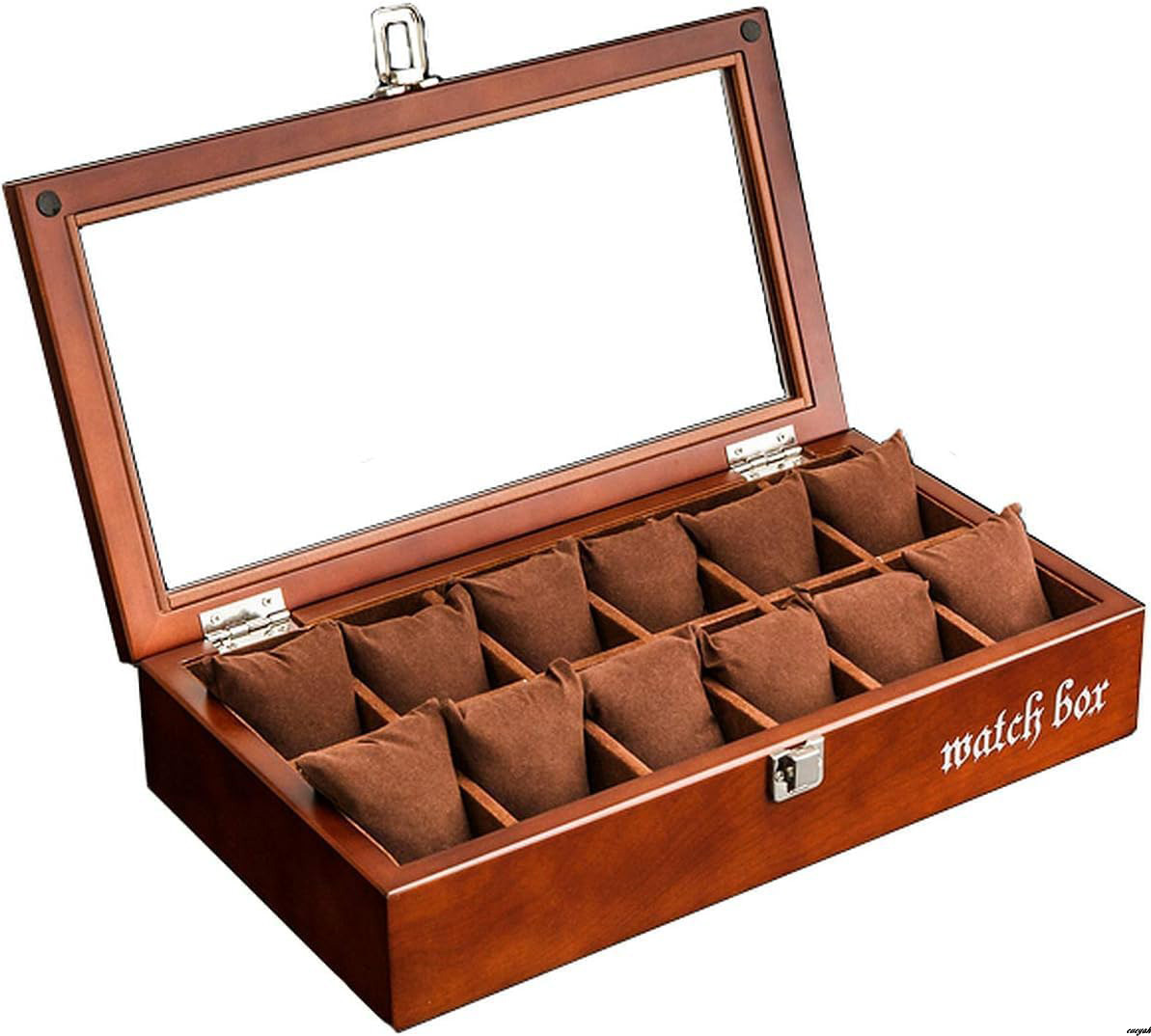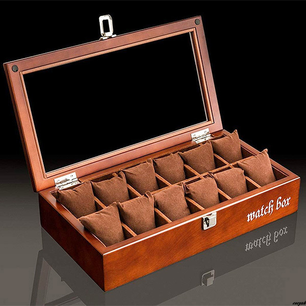 【高級感のあるデザインでインテリアとしても活躍】木製時計ケース 大容量収納 12本収納 透明ガラス付き プレゼント ギフト