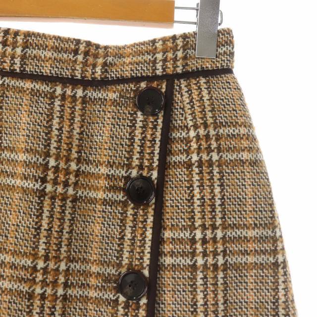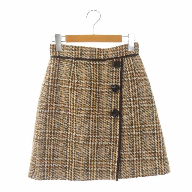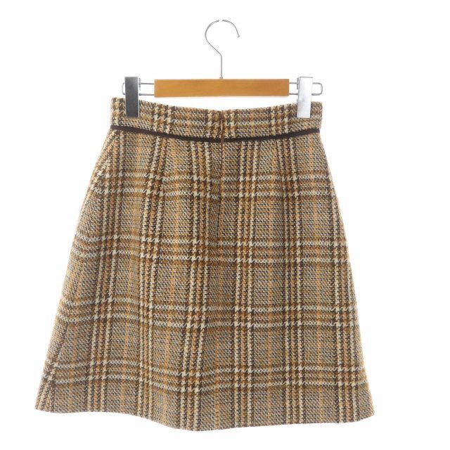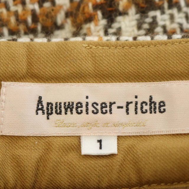 アプワイザーリッシェ Apuweiser-riche ウール ニット台形スカート ミニ チェック 1 茶 白 キャメル ブラウン ホワイト ■OS レディース