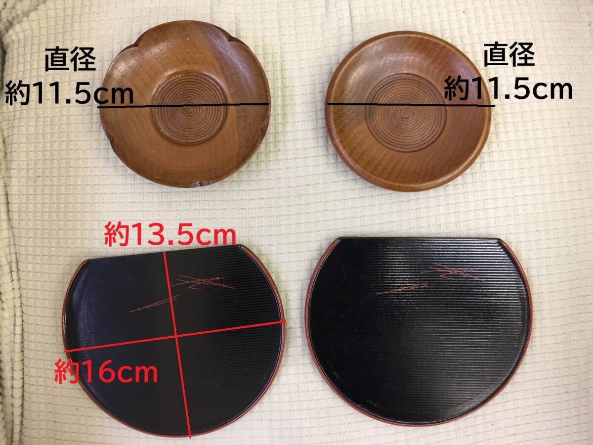 ◎サイズ サイズは画像2~4を ご参照ください。 11枚まとめて重量:約 628g ※多少誤差は生じると思います。 -------------- ◎状態 擦れ・傷・汚れ・経年劣化:あり ・長期保管品のため簡単に清掃しました 中古 全体的に傷が多数付いています。 傷以外にもホコリなどのこびりつきや 水アカのような汚れもあります。 画像に白抜き加工しているものが あります。それは、どうしても撮影者の 顔や部屋が映り込んでしまっているので、 加工しました。ご了承ください。 素材は木製、プラスチック系、ガラスと 色々です。(画像3に写っている透明な皿は 触った感じガラスだと思います) 多目的にお使いください。 美品ではありません。 使用感ある中古です。 -------------- 長期保管品のため、元々がかなり 汚れていました。清掃はしたものの、 取り切れていない汚れが残っていると 思います。ご利用になる前に今一度 洗ってからご利用ください。 使用不可というほどの状態ではあり ませんが、あくまでも中古、長期に 渡る保管品という事をご了承ください。