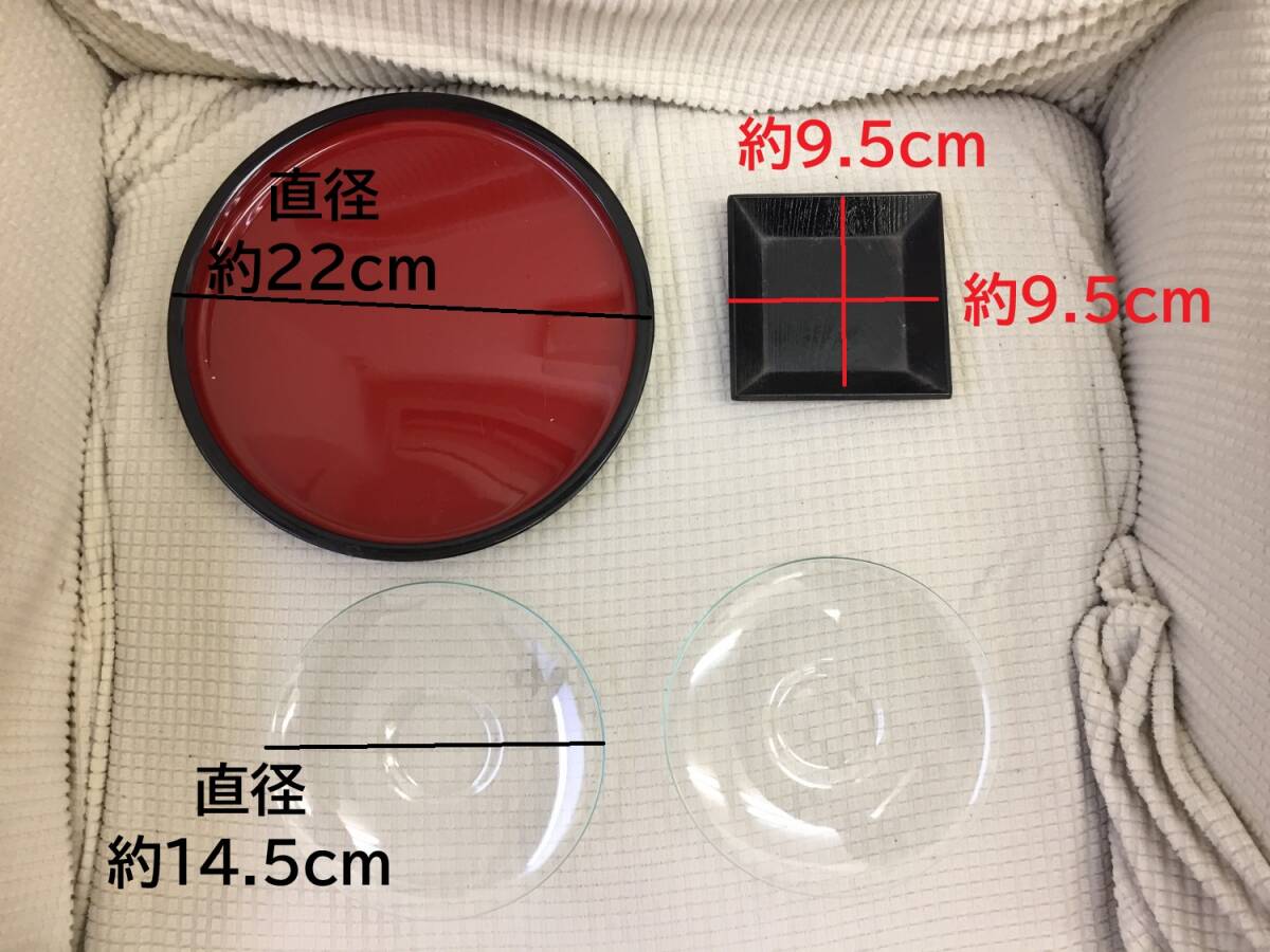 ◎サイズ サイズは画像2~4を ご参照ください。 11枚まとめて重量:約 628g ※多少誤差は生じると思います。 -------------- ◎状態 擦れ・傷・汚れ・経年劣化:あり ・長期保管品のため簡単に清掃しました 中古 全体的に傷が多数付いています。 傷以外にもホコリなどのこびりつきや 水アカのような汚れもあります。 画像に白抜き加工しているものが あります。それは、どうしても撮影者の 顔や部屋が映り込んでしまっているので、 加工しました。ご了承ください。 素材は木製、プラスチック系、ガラスと 色々です。(画像3に写っている透明な皿は 触った感じガラスだと思います) 多目的にお使いください。 美品ではありません。 使用感ある中古です。 -------------- 長期保管品のため、元々がかなり 汚れていました。清掃はしたものの、 取り切れていない汚れが残っていると 思います。ご利用になる前に今一度 洗ってからご利用ください。 使用不可というほどの状態ではあり ませんが、あくまでも中古、長期に 渡る保管品という事をご了承ください。