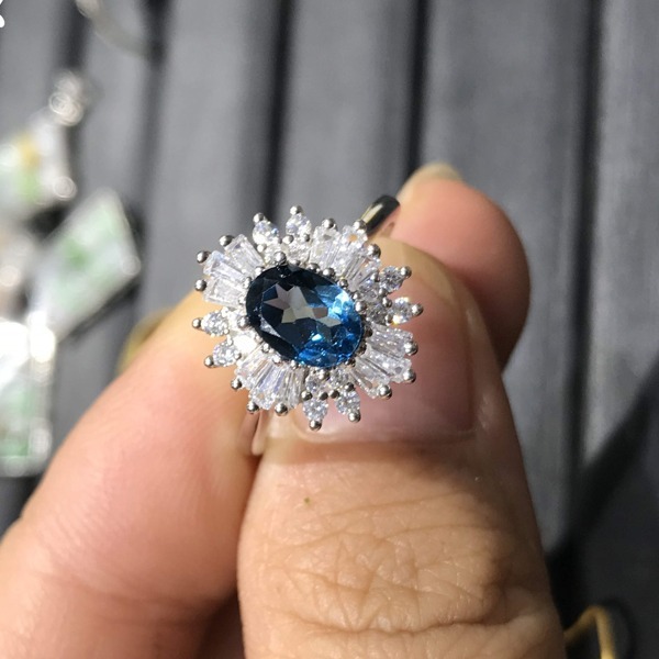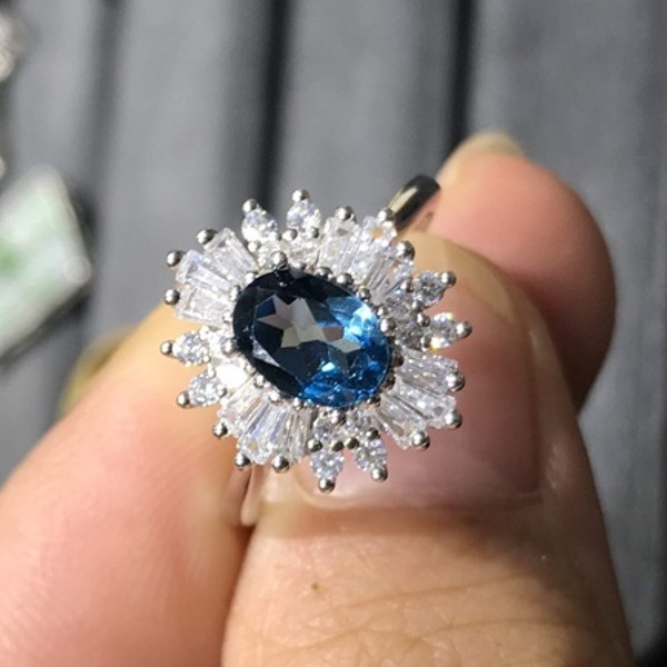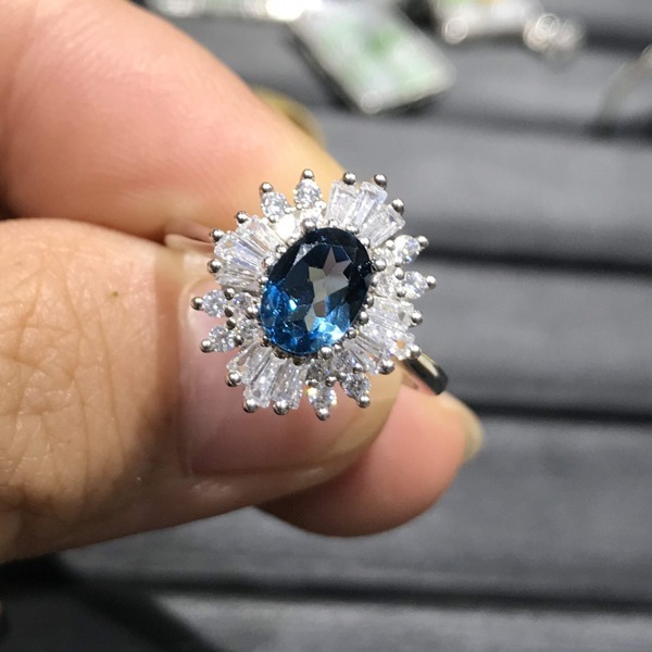 女性用ブルートパーズリング、 5×7mm、925シルバー、ウェディングパーティー