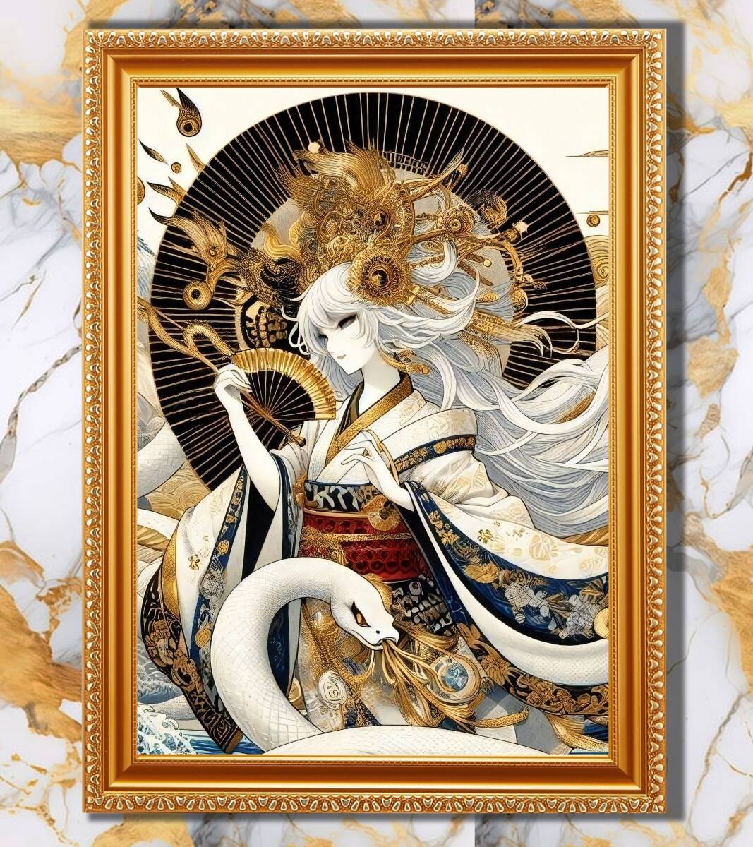 金運上昇・技芸上達・商売繁盛・学業成就を招く『弁財天』の神秘的な姿を描いた一品です。
