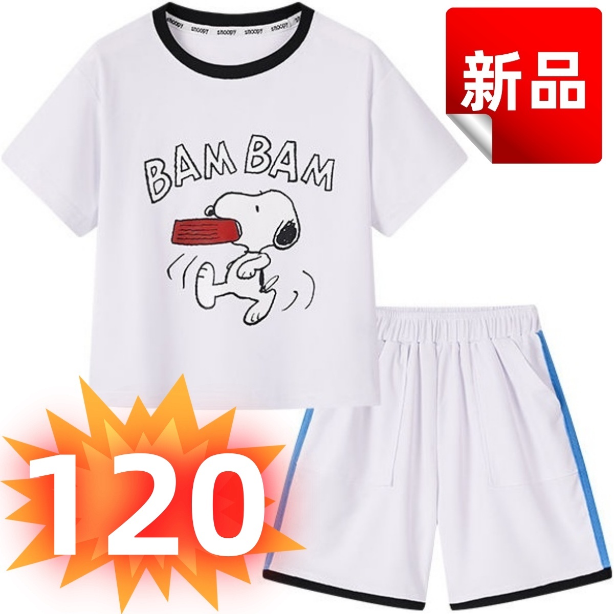 【新品】スヌーピー BAM BAM キッズ Tシャツ ショートパンツ 上下セット 子供服 男の子 女の子 夏服 カジュアル かわいい 半袖 白 120cm