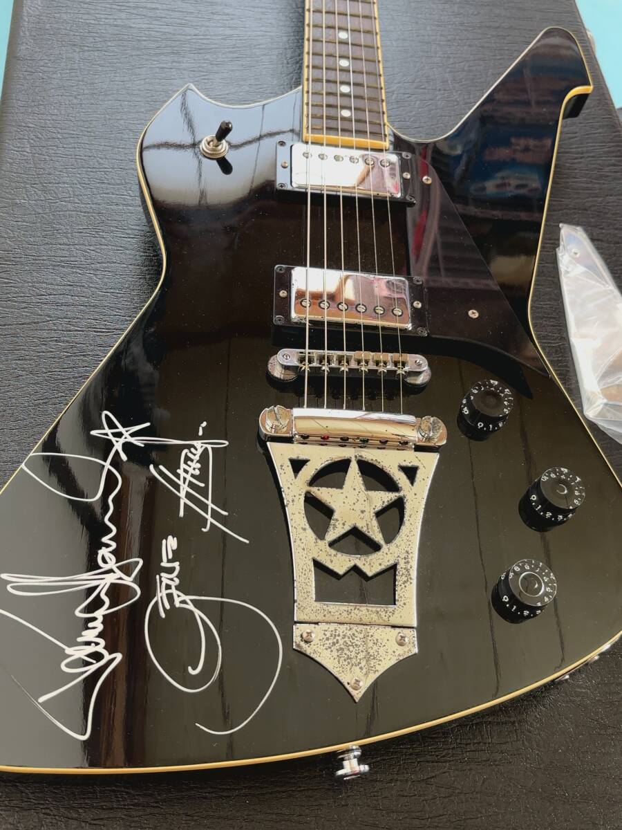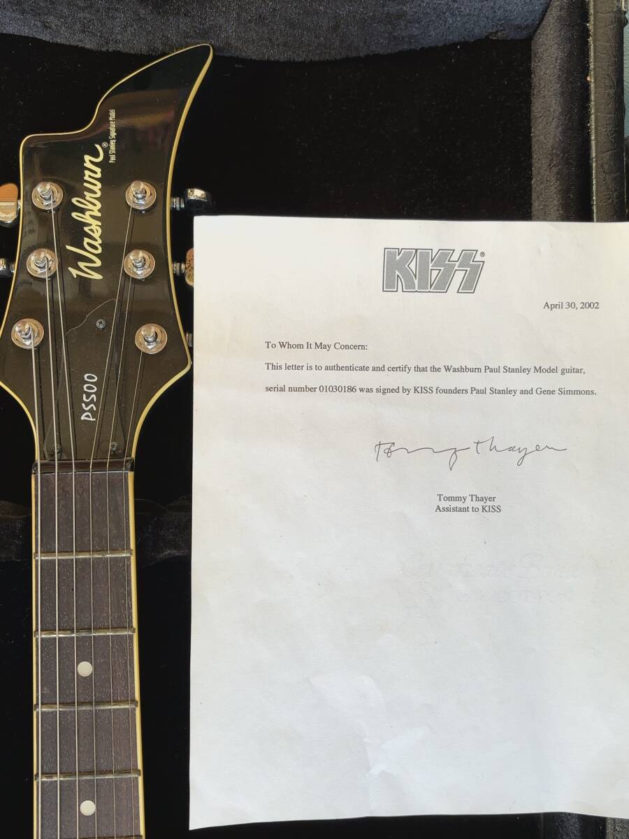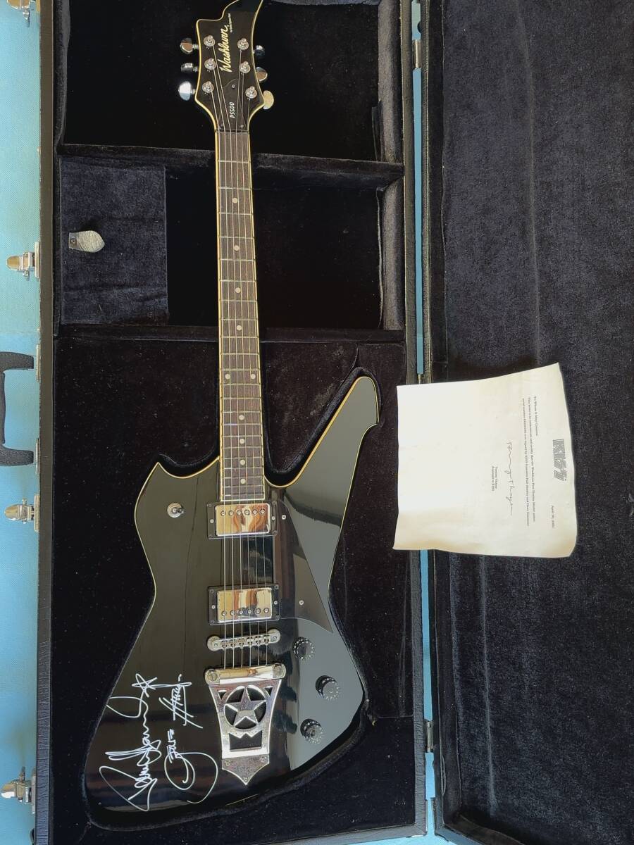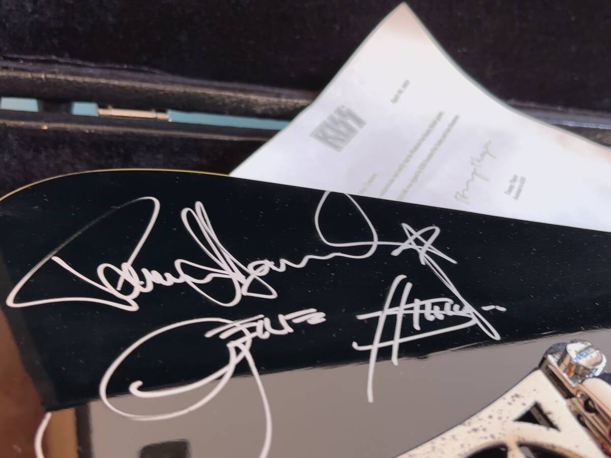 KISSのレジェンドメンバー、Paul Stanleyと Gene Simmonsの直筆サイン入りギターです。