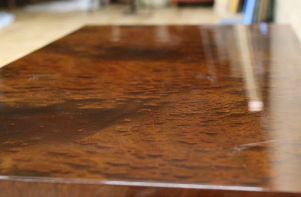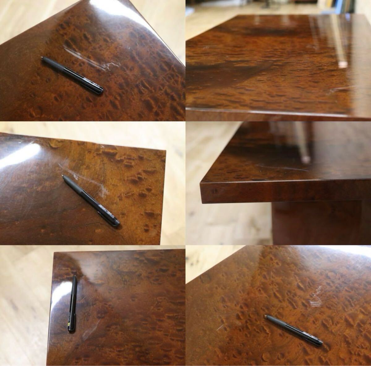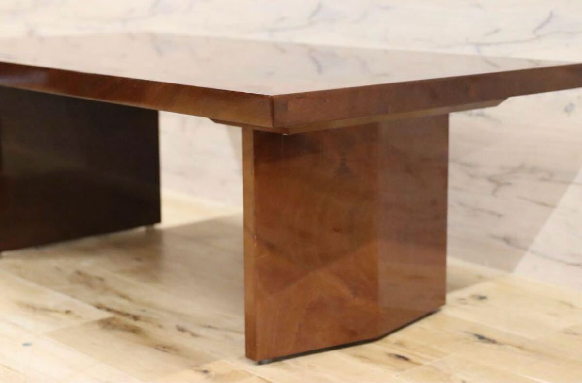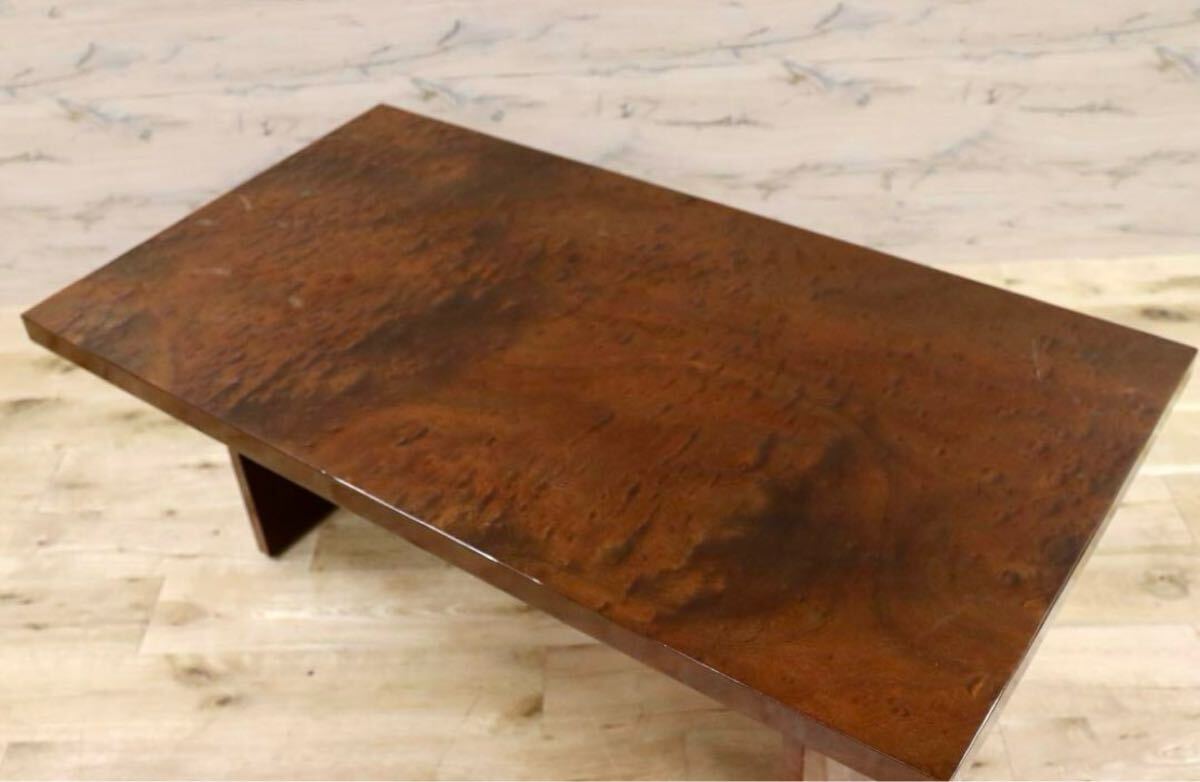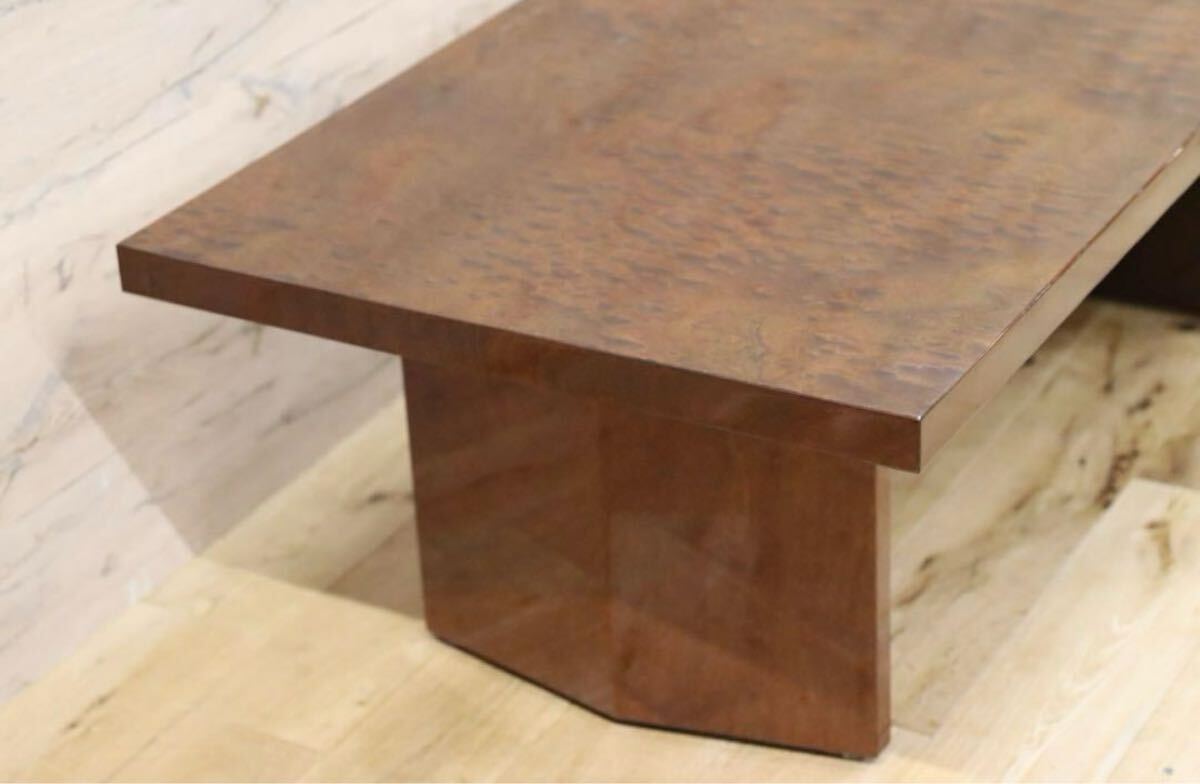 テーブルの表面を彩る美しい柄は希少な銘木の杢目によるもの。