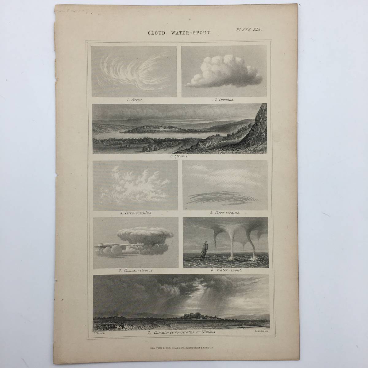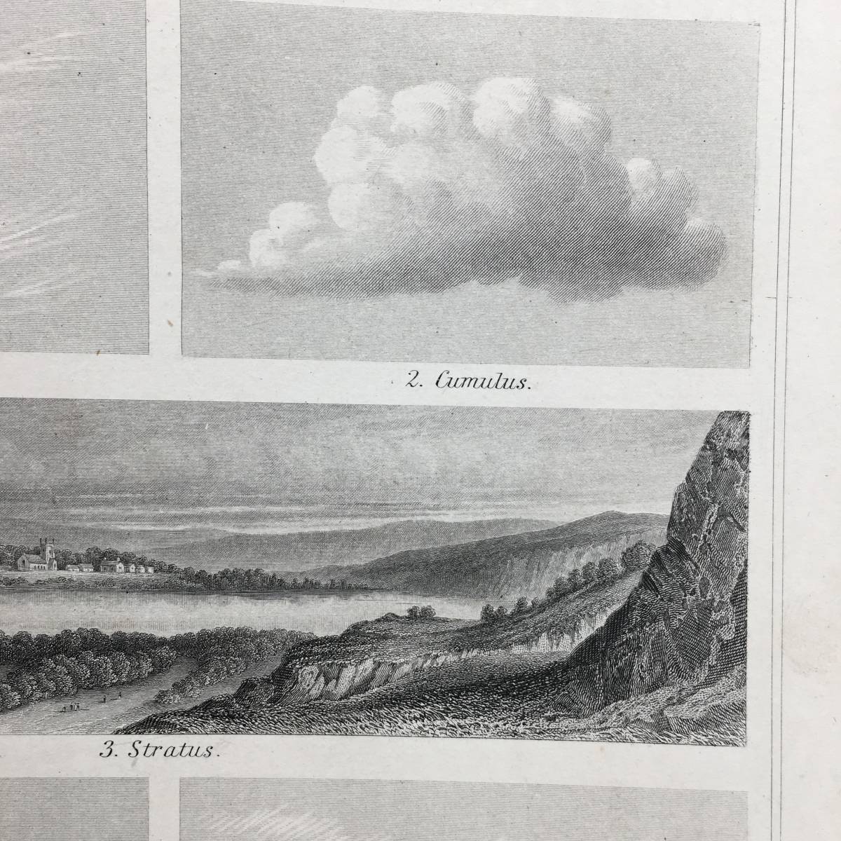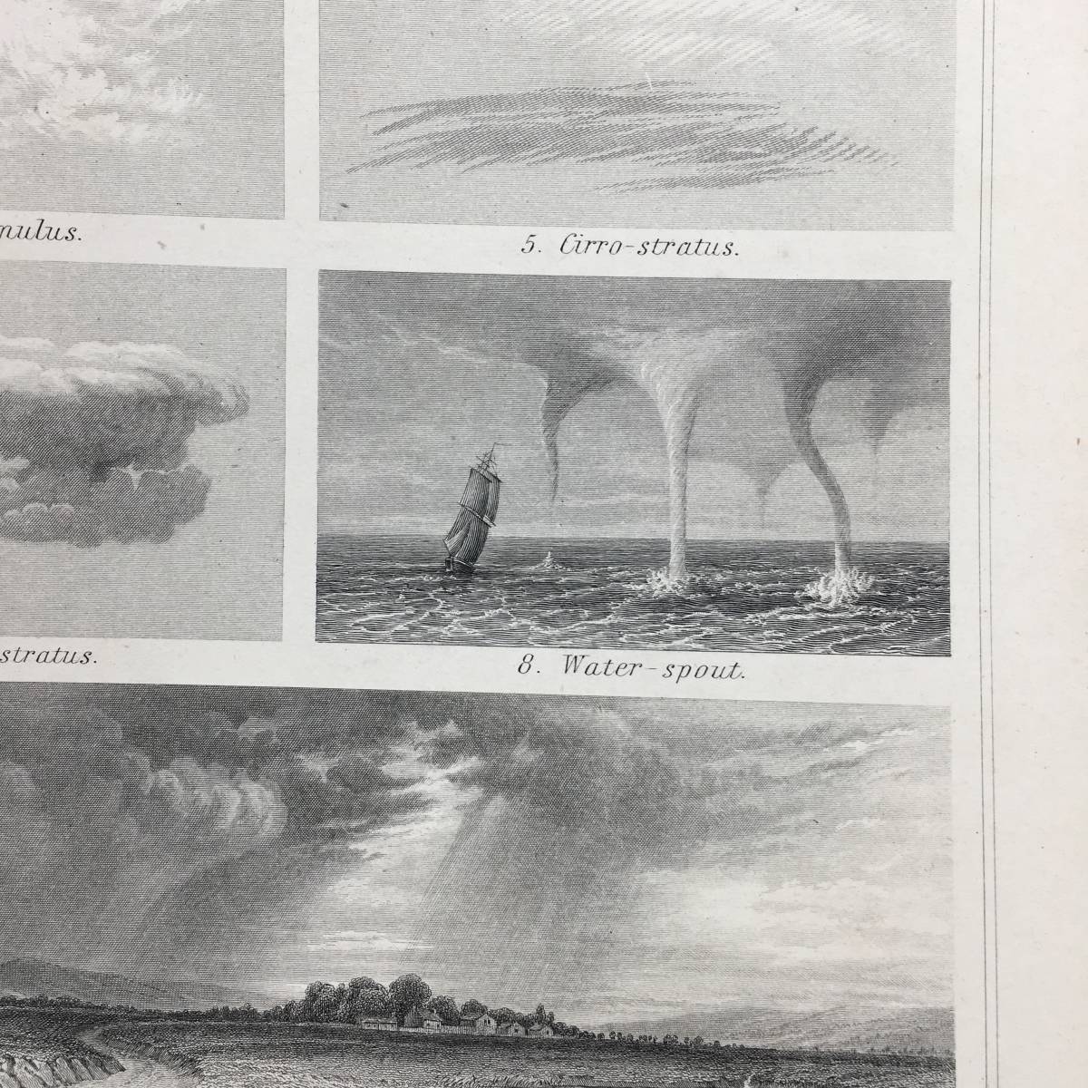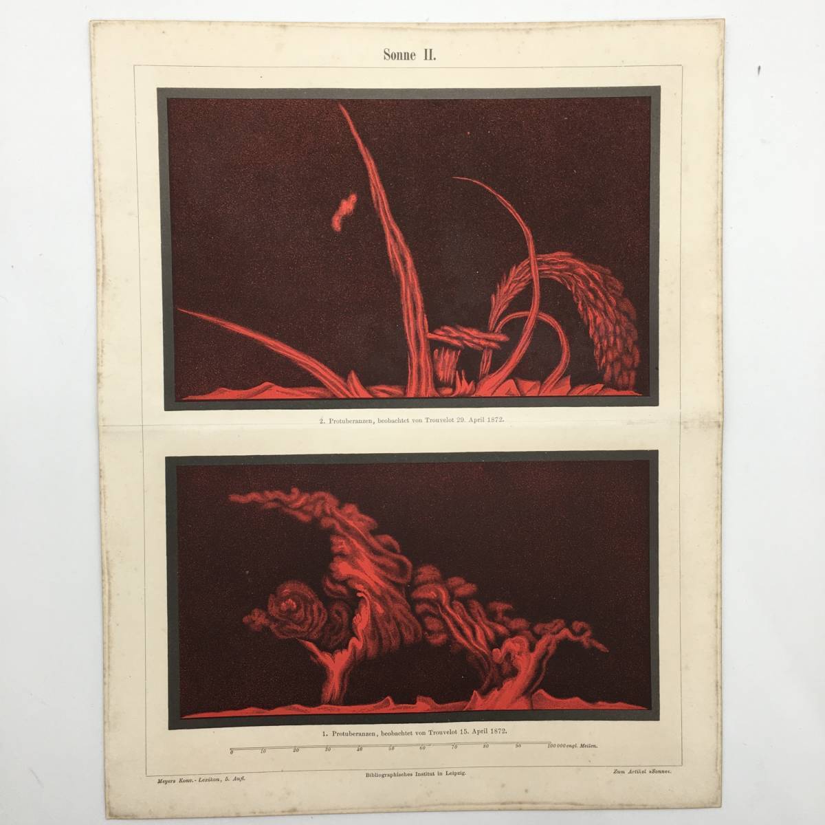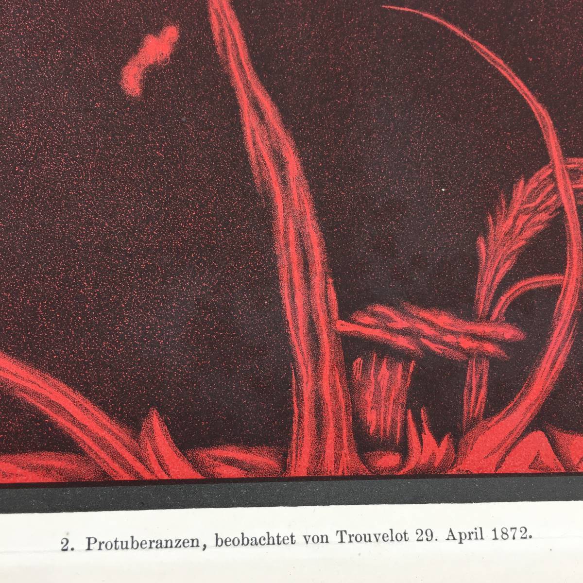 博物画『 雲、竜巻、太陽の紅炎(プロミネンス 2枚セット』 19世紀ドイツ/イギリス 多色石版画/銅版画 アンティーク 天文学