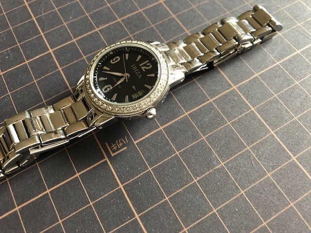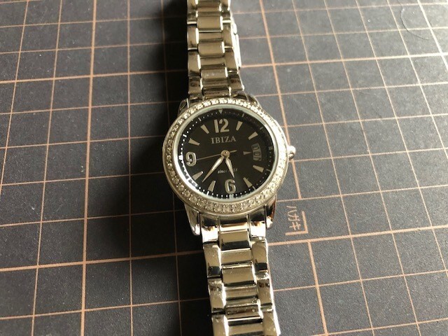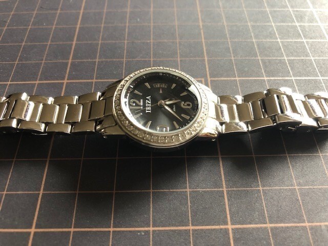 レア 良好 良デザイン IBIZA イビザ since1818 ストーンベゼル デイト CRYSTAL COLLECTION 純正ブレス クオーツ レディース 腕時計
