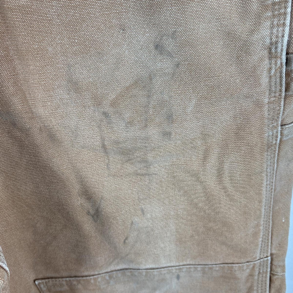 | 外側 | 表面:汚れ、スレ、シワ、色褪せ、糸のほつれ 全体的に色褪せ、汚れ 両裾にダメージ |