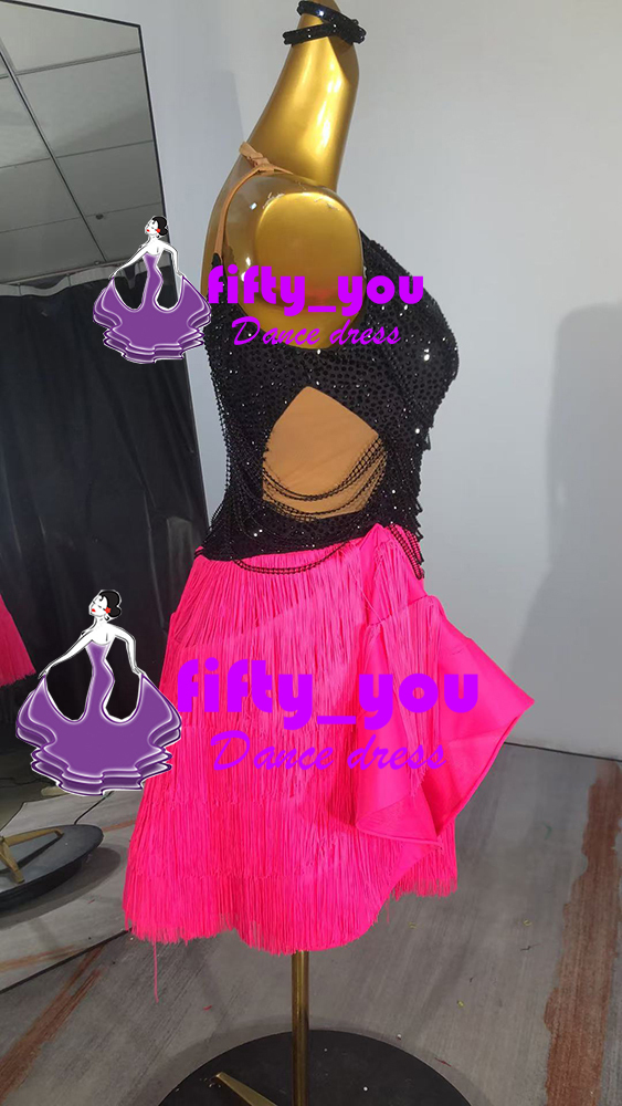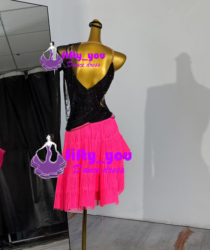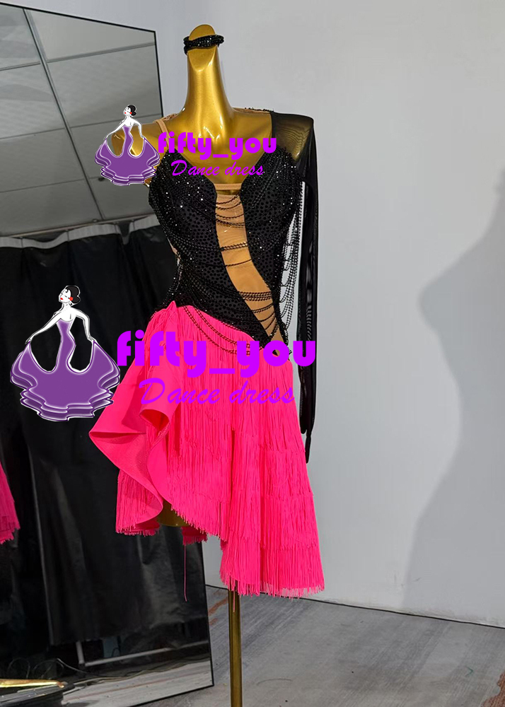 新品fifty_you レディース社交ダンスドレス  ラテン競技試合パーティー用ドレス セミオーダー対応  フリンジ+ネット飾り