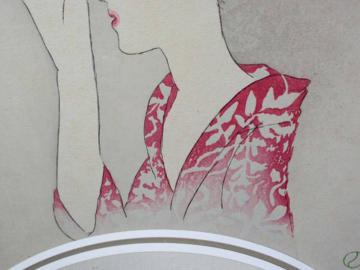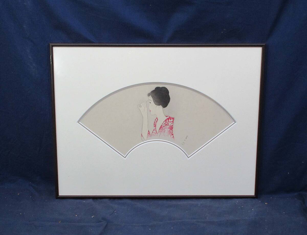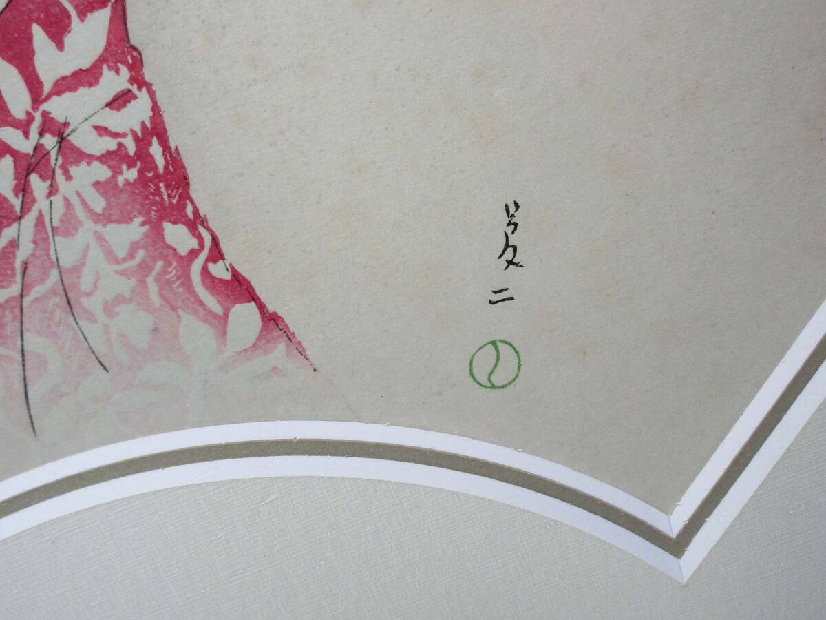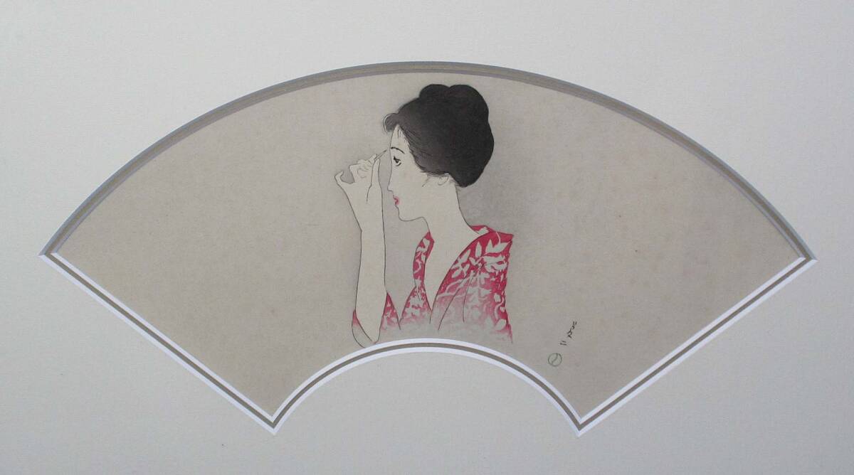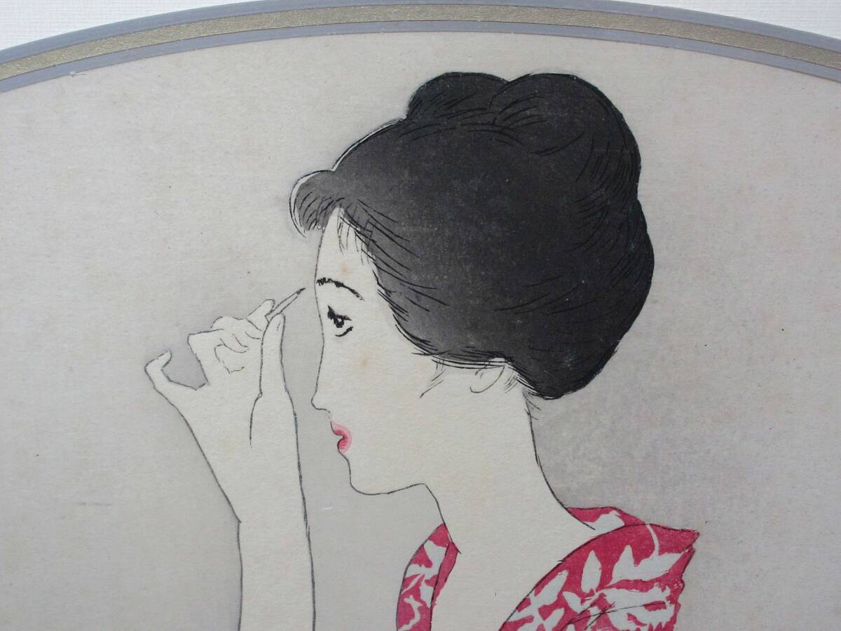木版画 竹久夢二 作 仮題「日本美人」扇面額