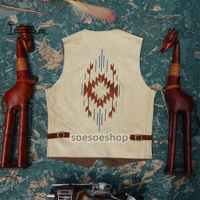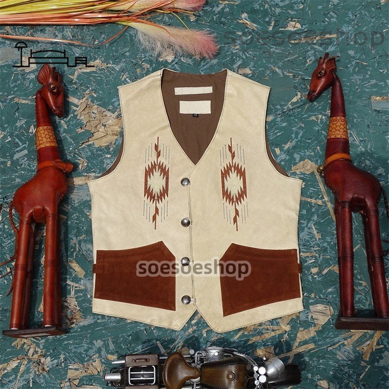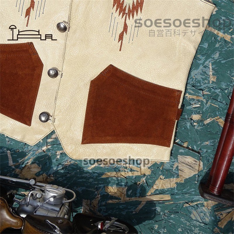 ヴィンテージ 復刻  レザージャーキン ベスト 本革 刺繍 羊革 ナバホ柄  M~3XL ライダース