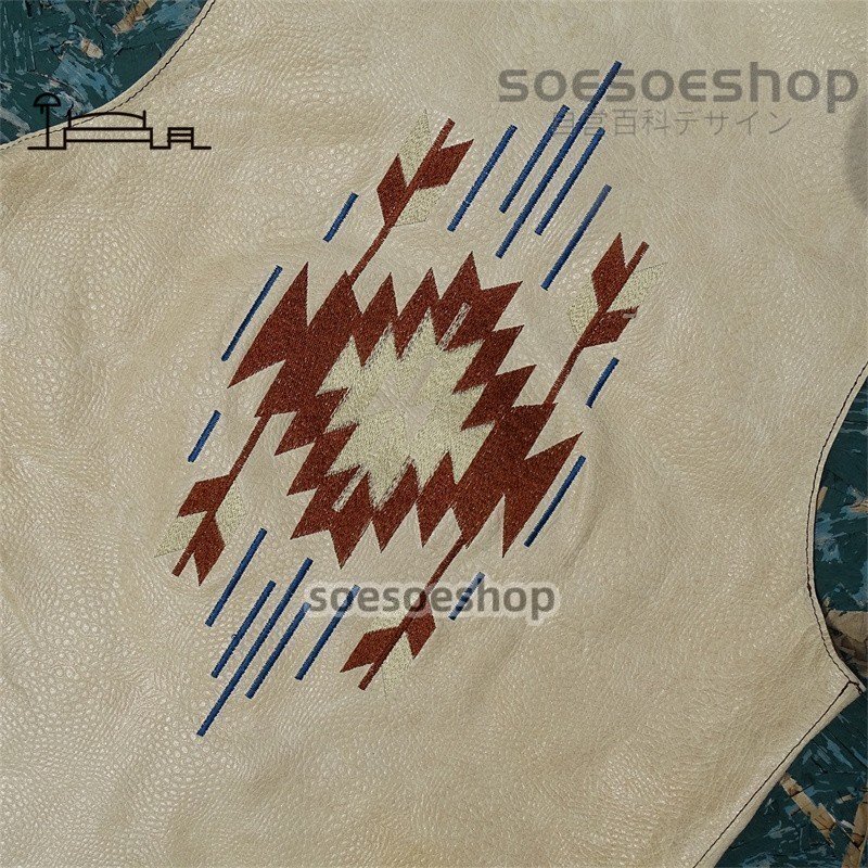 ヴィンテージ 復刻  レザージャーキン ベスト 本革 刺繍 羊革 ナバホ柄  M~3XL ライダース