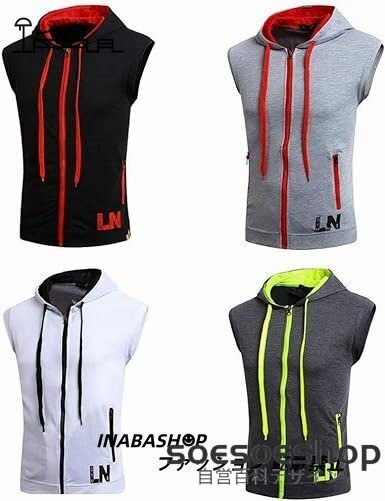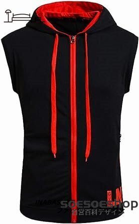 フード付きベスト メンズ スポーツ ノースリーブパーカー アクティブウェア フィットネス トレーニングウェア 袖なし ジッパー大きいサイズ