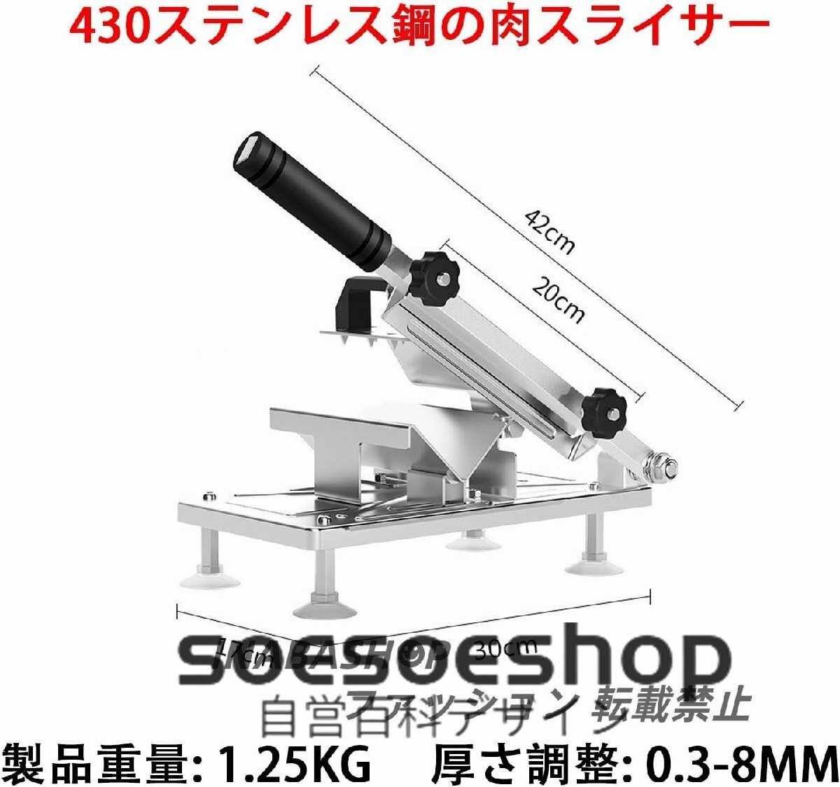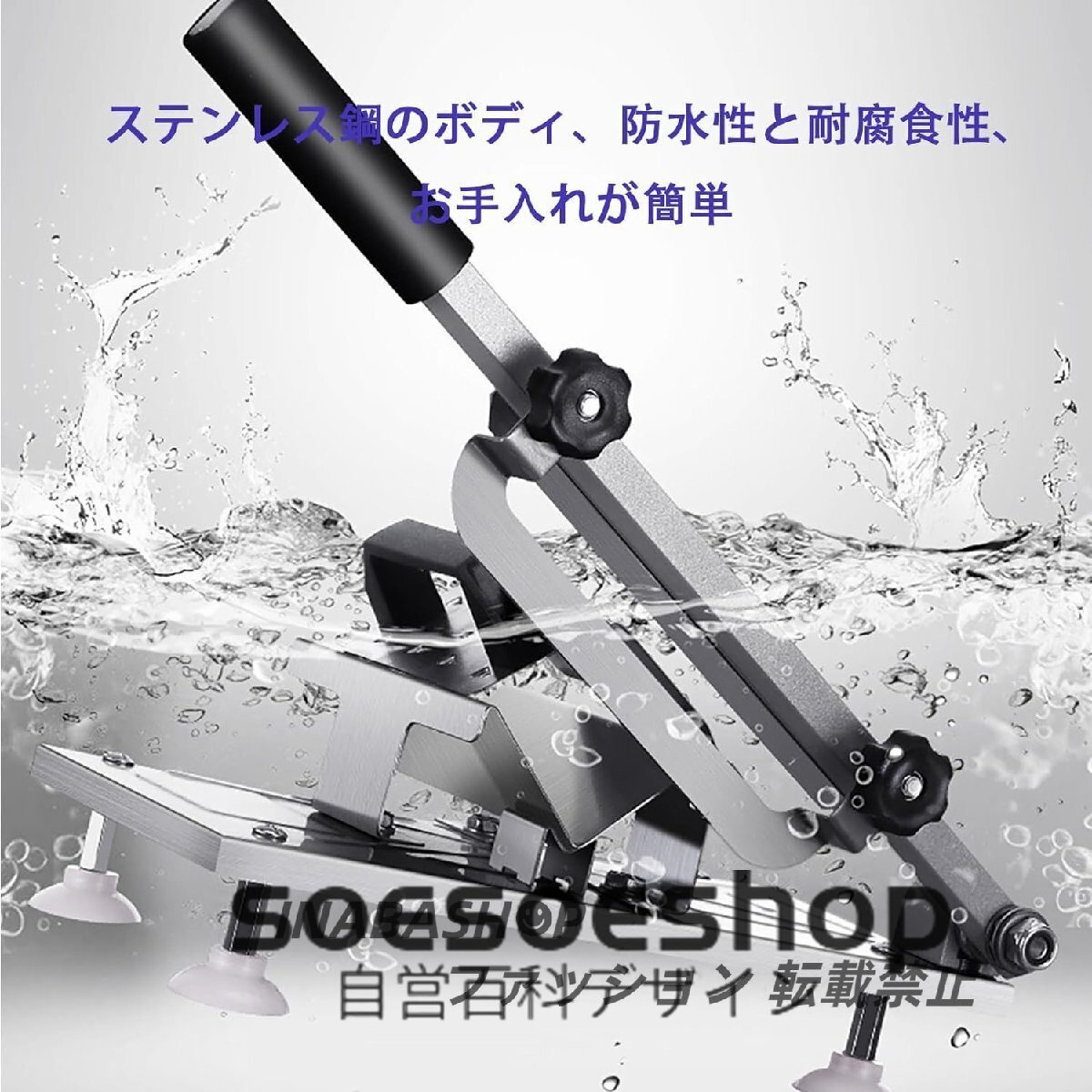 手動式 ミートスライサー 生ハム 冷凍肉 0.3~8mm 調節可能 丸洗い可能 吸盤付きスタンドで作業も安全 業務用 家庭用 ステンレス鋼