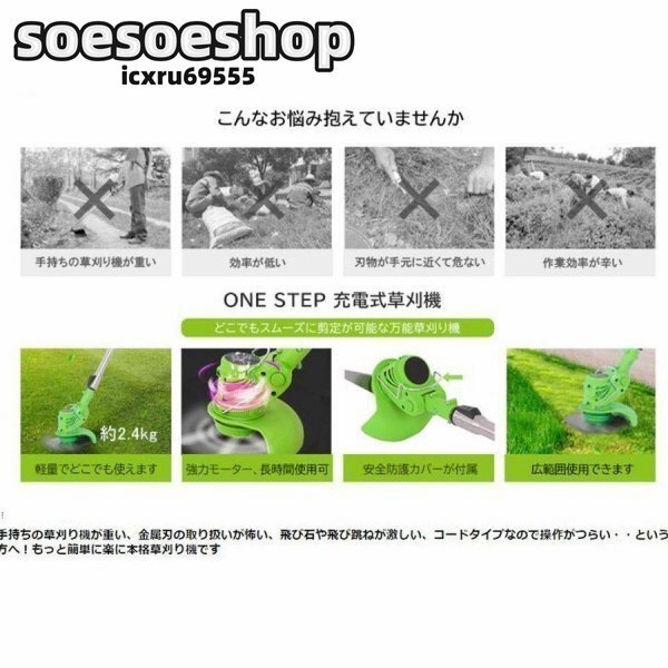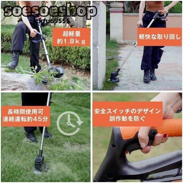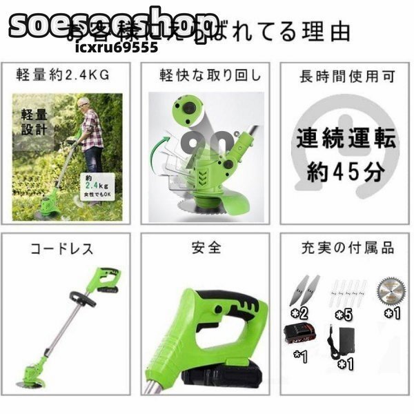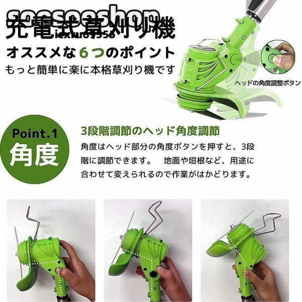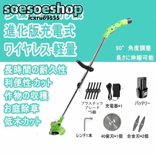 草刈機 充電式 草刈機 バッテリー付き 草刈り機刈払機コードレス伸縮角度調整雑草伸縮角度調整 替刃付き3種の刃付き 強力 静音
