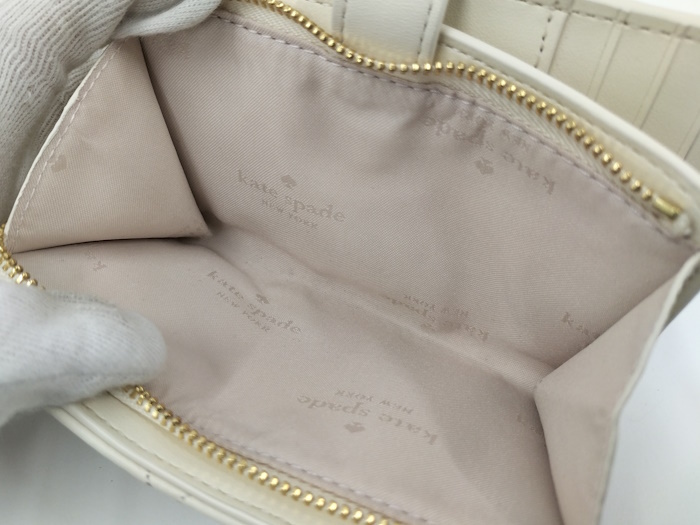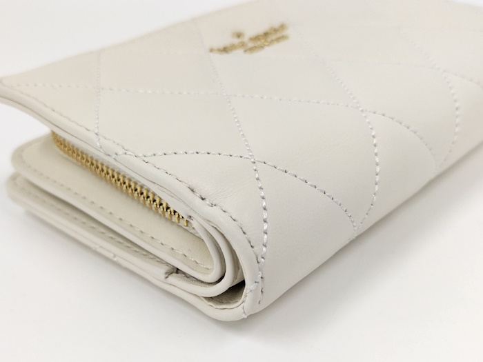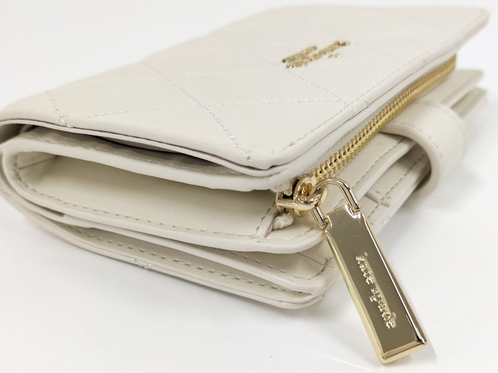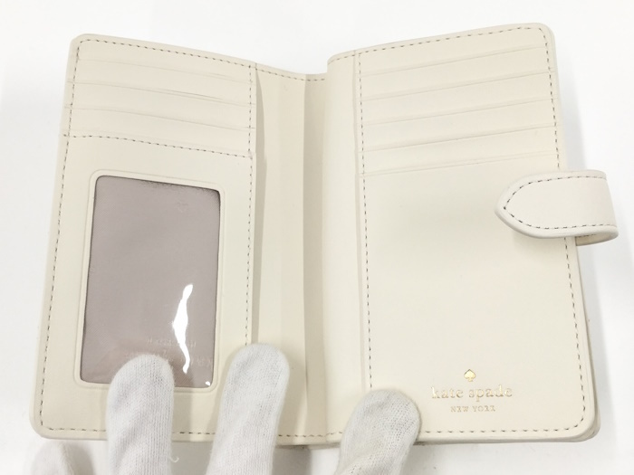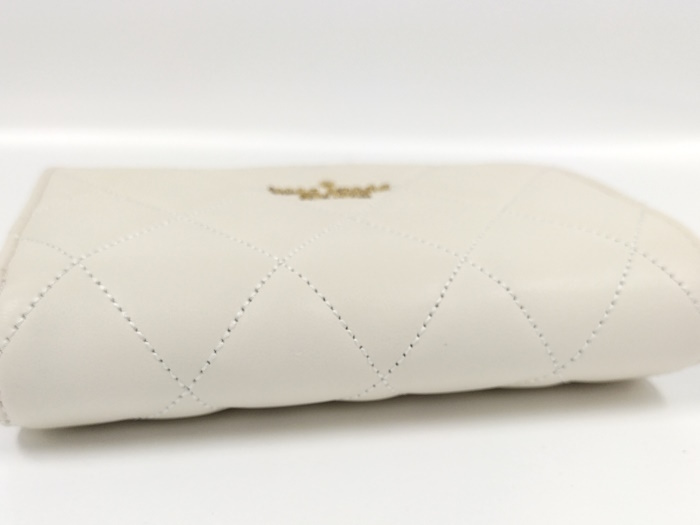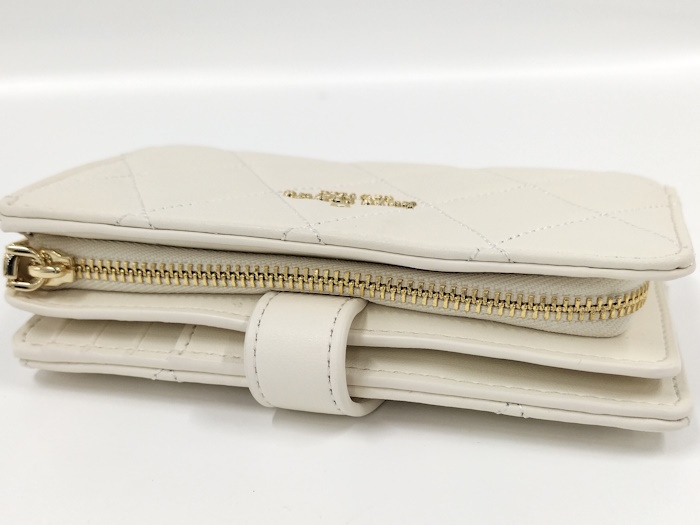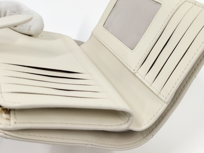 | ◆商品情報 | ・カラー:アイボリー系 ・素材/ライン:レザー ・サイズ:最大約 W14×H9(cm) 外側:・小銭入れ×1 内側:・札入れ×2 ポケット×2 カード入れ×9 |