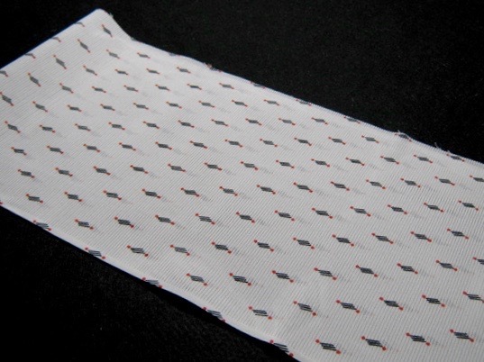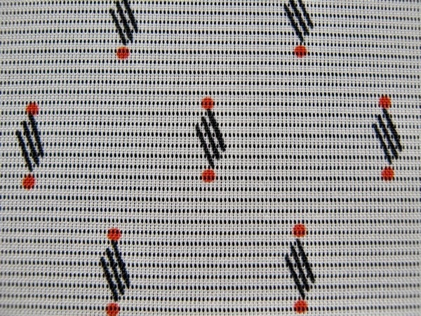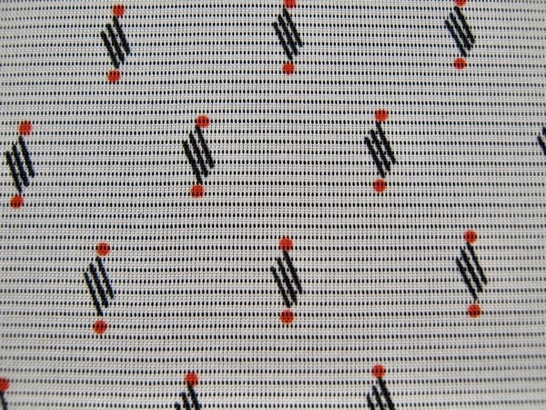 古布 半衿【化繊駒絽/音符の様な・・黒 赤 生成(白)地】はぎれ
