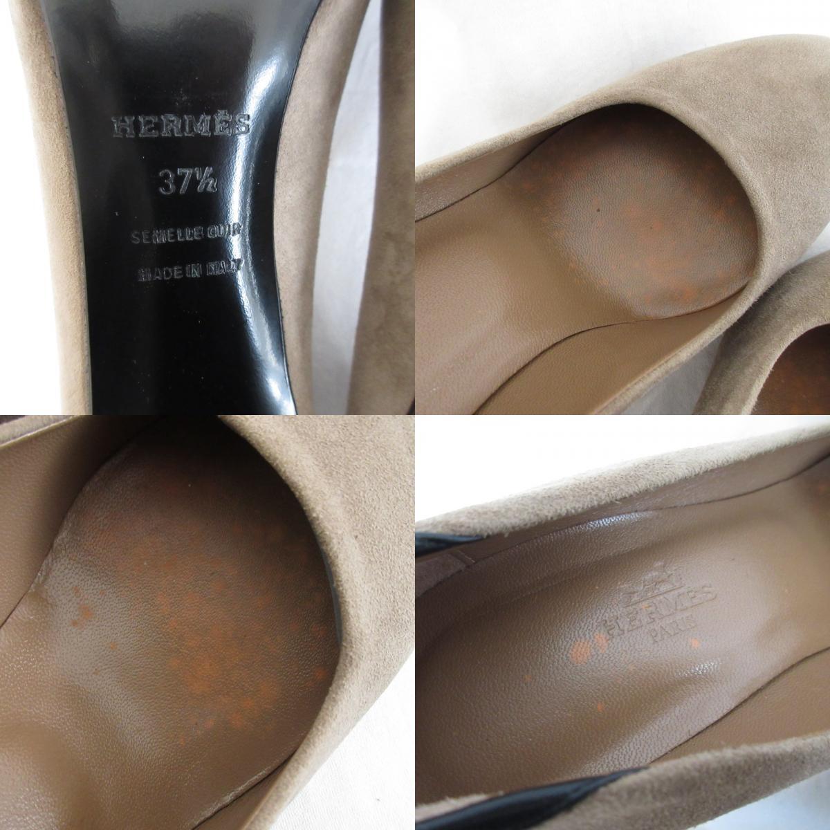 商品名:良品 HERMES エルメス チャンキーヒール スエードコンビレザー パンプス サイズ37 1/2 約24.5cm ベージュ