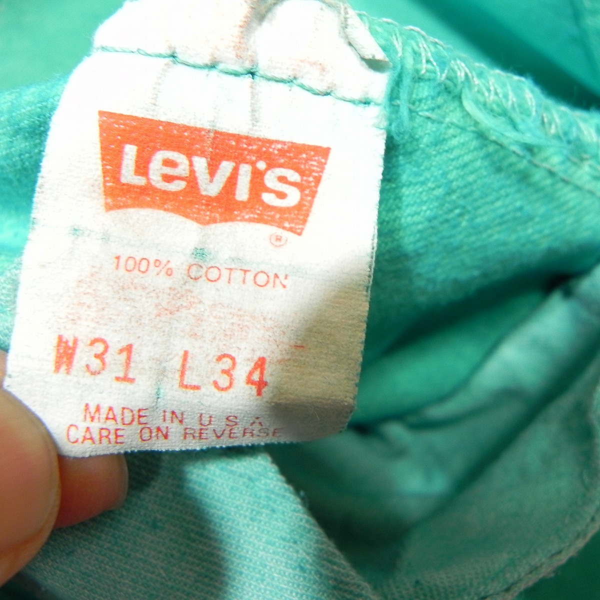 l826★ 80s USA製 Levis 501 リーバイス 後染め カラー デニムパンツ ジーンズ 古着 W31 ターコイズ系 古着 レトロ ビンテージ ★
