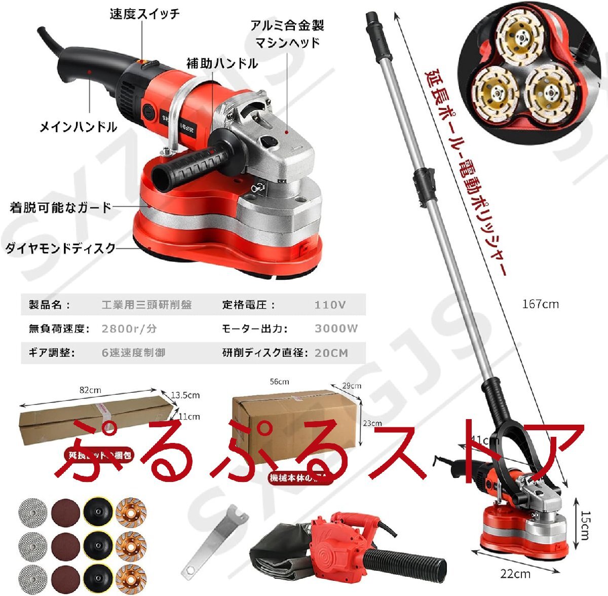 電動トロウェル 110V 3頭 パワートロウェル 6速調整 コンクリート研磨機 セメント モルタル ポリッシャー 電動サンダー