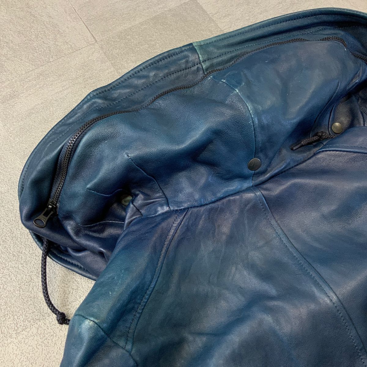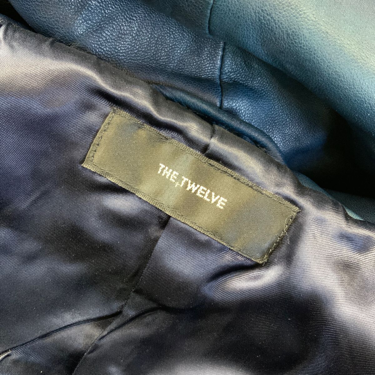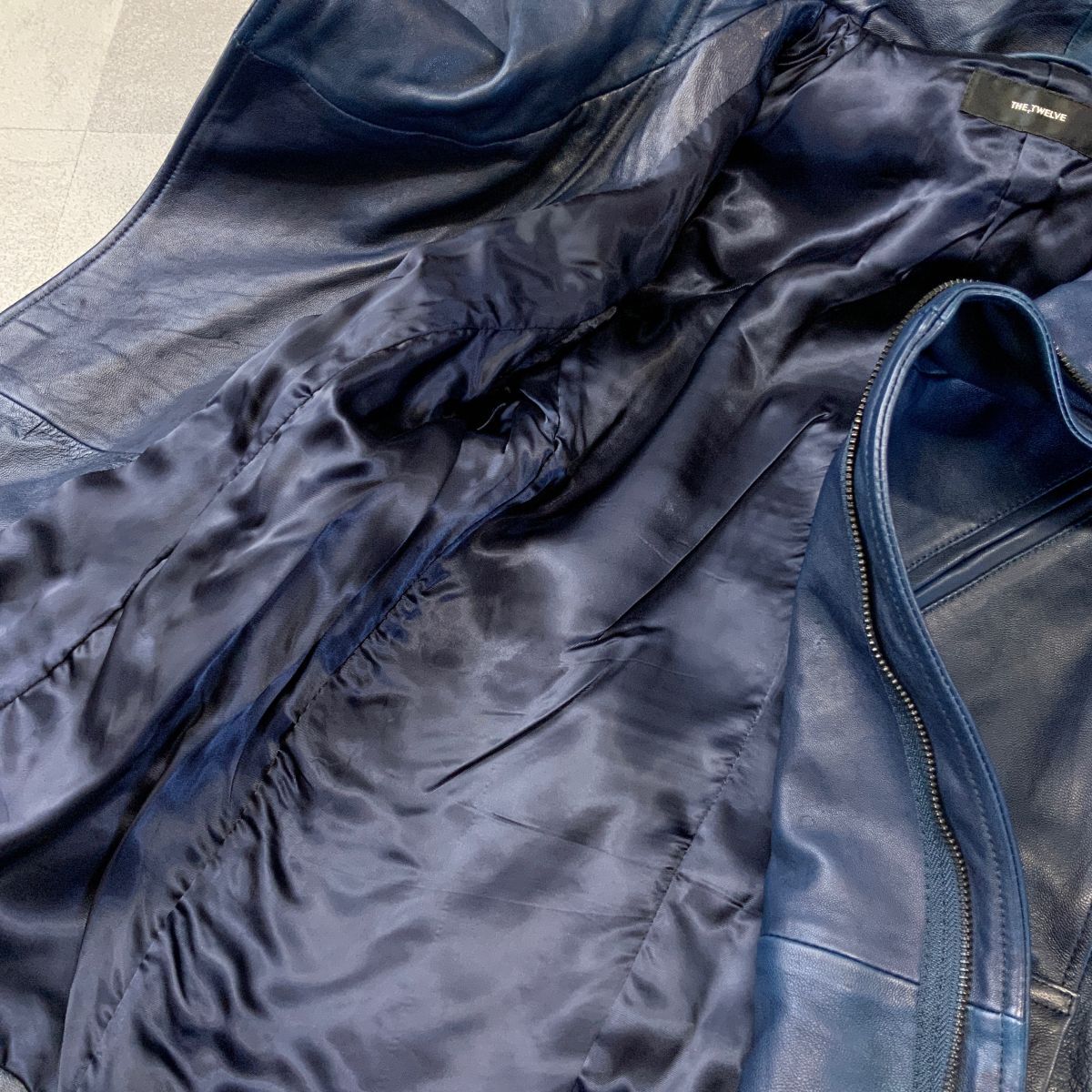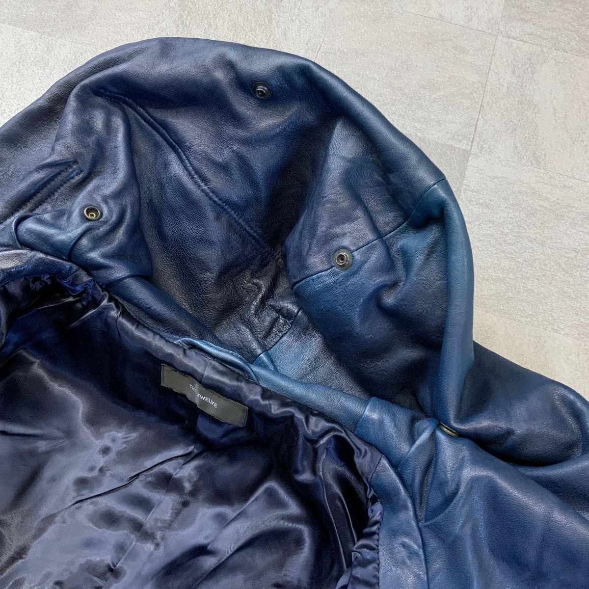 【滑らかなラムレザー】THE TWELVE トゥエルブ デザイン フーディ ライダースジャケット メンズ 46サイズ ブルー系