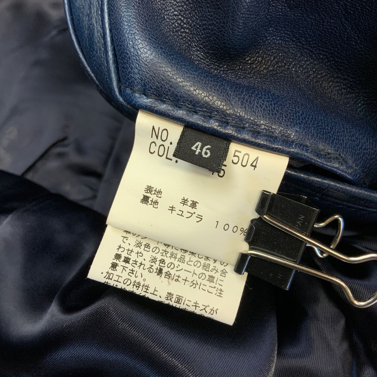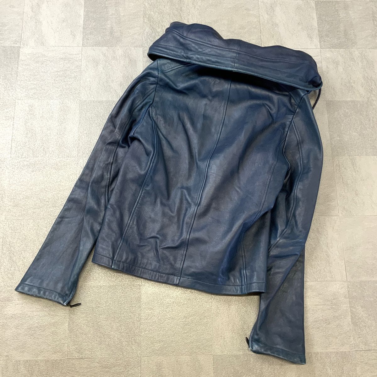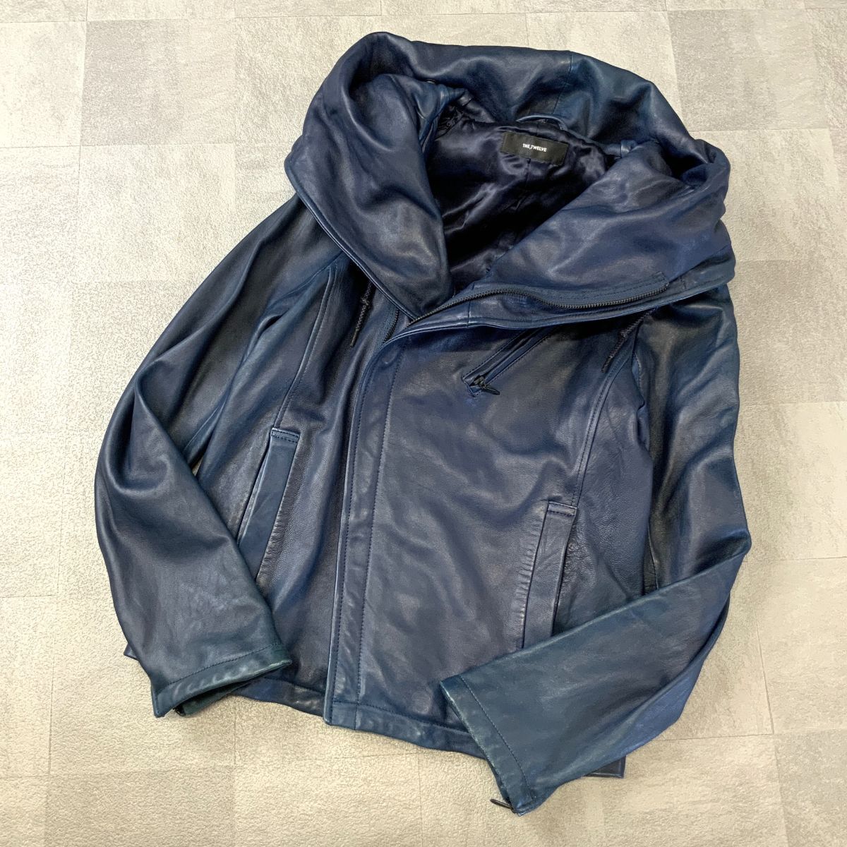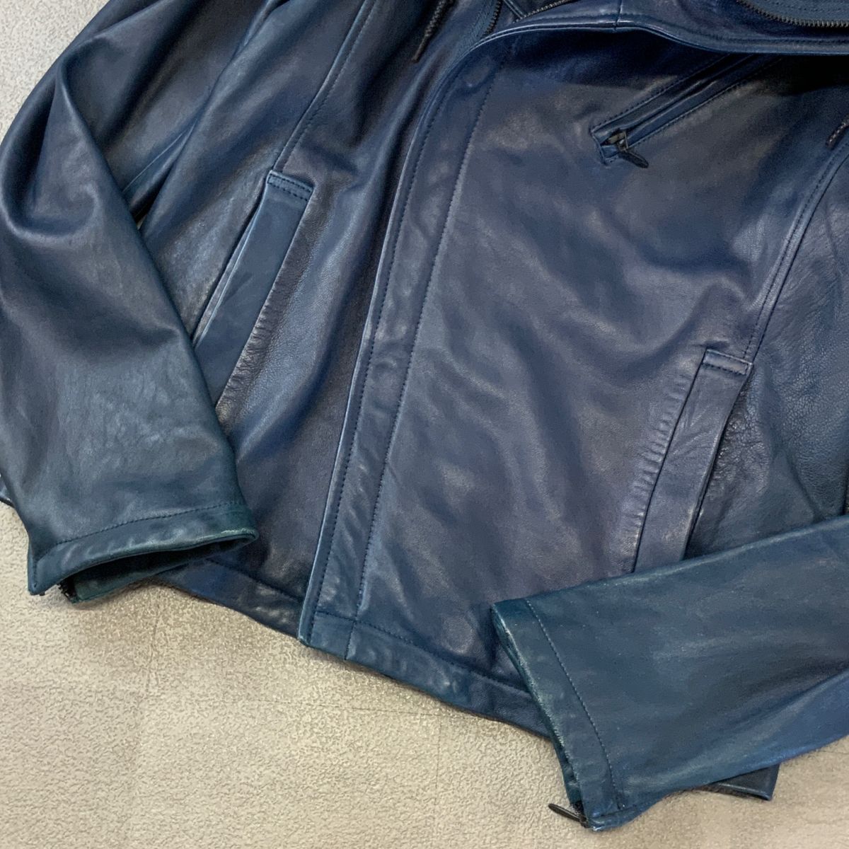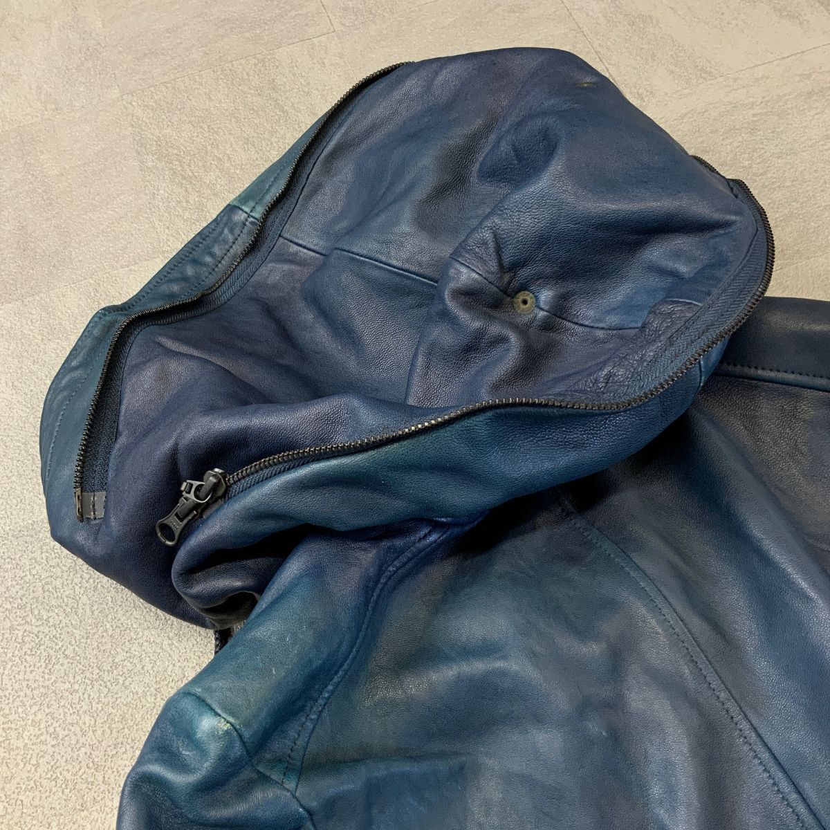 【滑らかなラムレザー】THE TWELVE トゥエルブ デザイン フーディ ライダースジャケット メンズ 46サイズ ブルー系