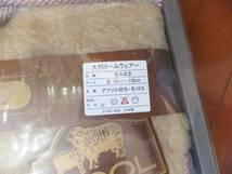 未使用品です。暖かい大判ホームウェアーです、お色はブラウン系です。サイズは、90×130cm位です。材質は毛10%アクリル90%です。箱は傷んでいます。自宅保管品ですので神経質な方は御遠慮下さいね。ノークレームノーリターンでお願い致します。その他いろいろ出品していますので見て下さいね。
