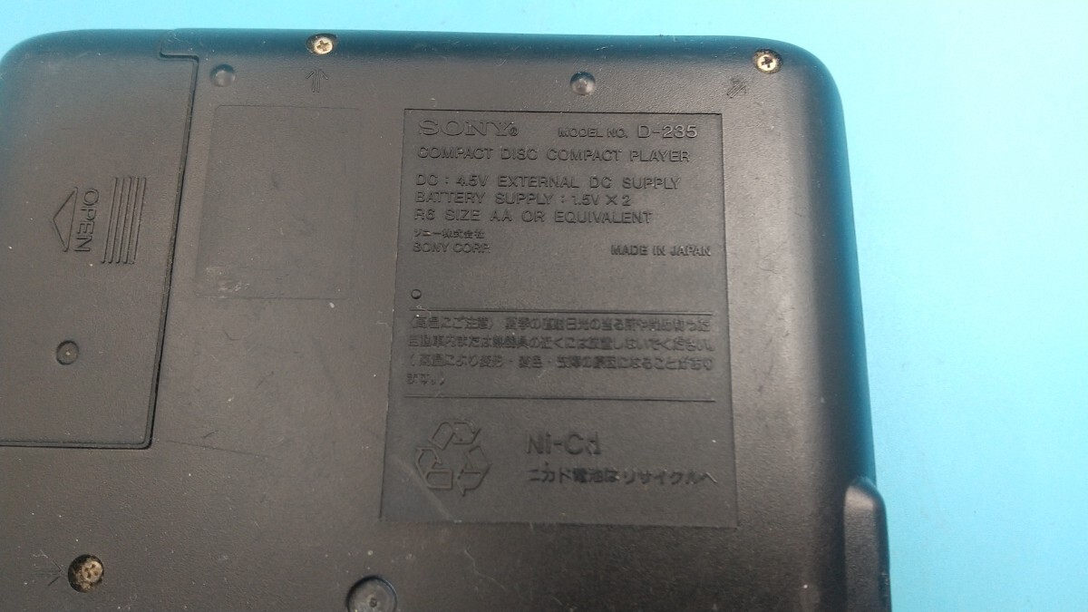 K2671 SONY D-235 COMPACT DISC PLAYER /ポータブルCDプレーヤー/ディスクマン 通電不可 簡易清掃OK 現状品 送料無料