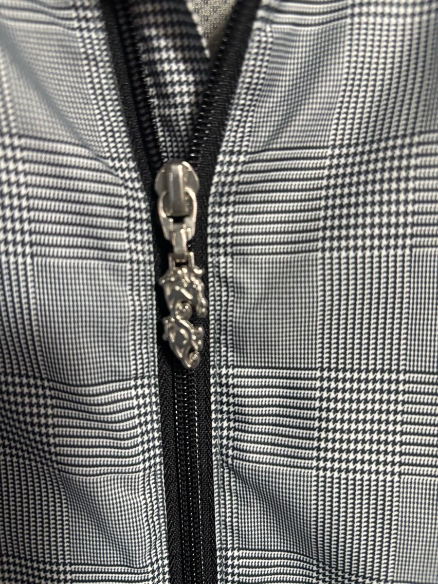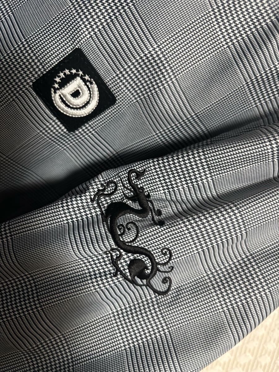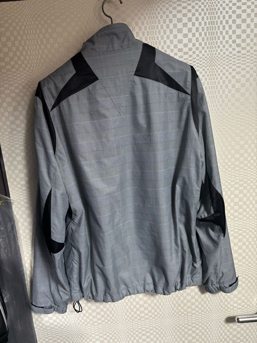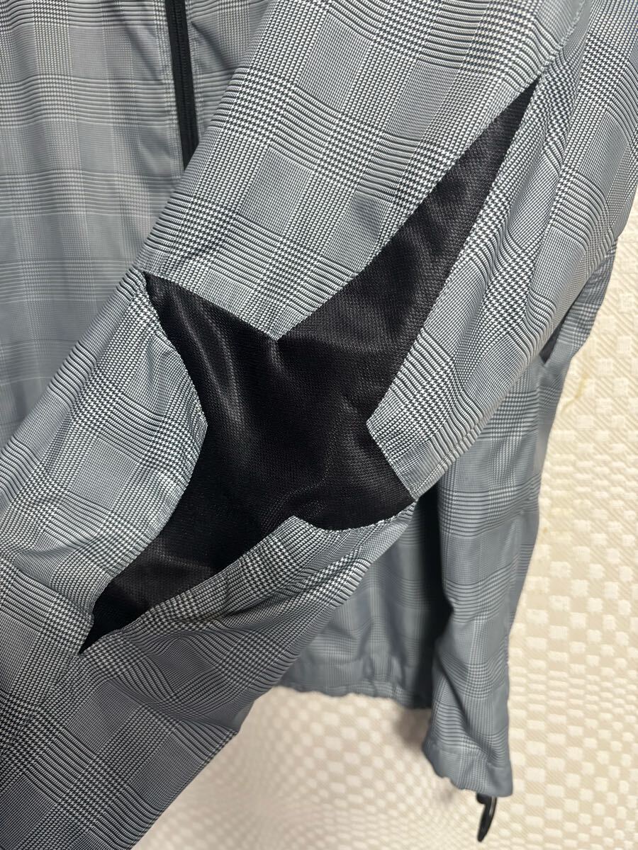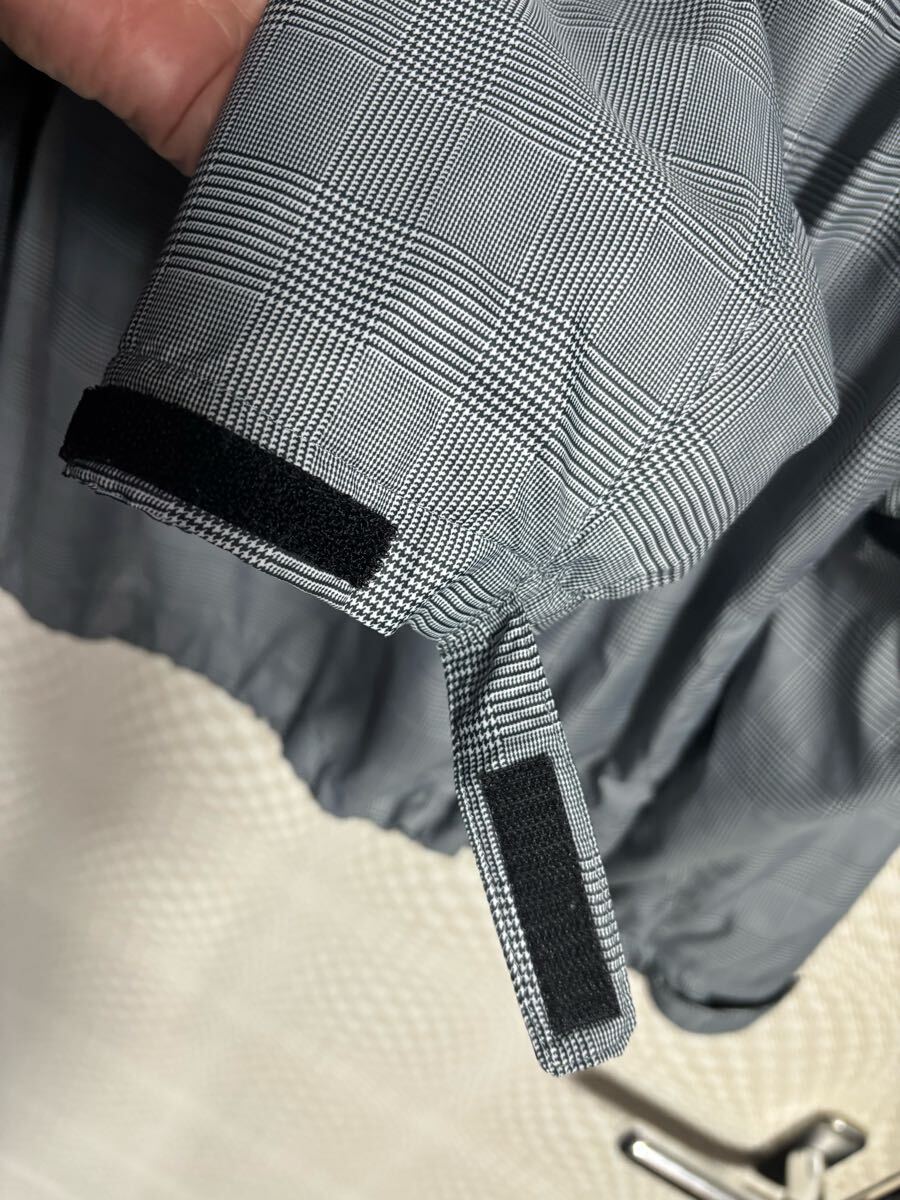 ダンスウィズドラゴンの春物ジャケットです。サイズ2表記で平置き脇下身幅58、着丈68肩幅46袖丈63センチ位です。中側はメッシュ生地の二重構造です。袖口にマジックテープ、裾にドローコードが付いています。