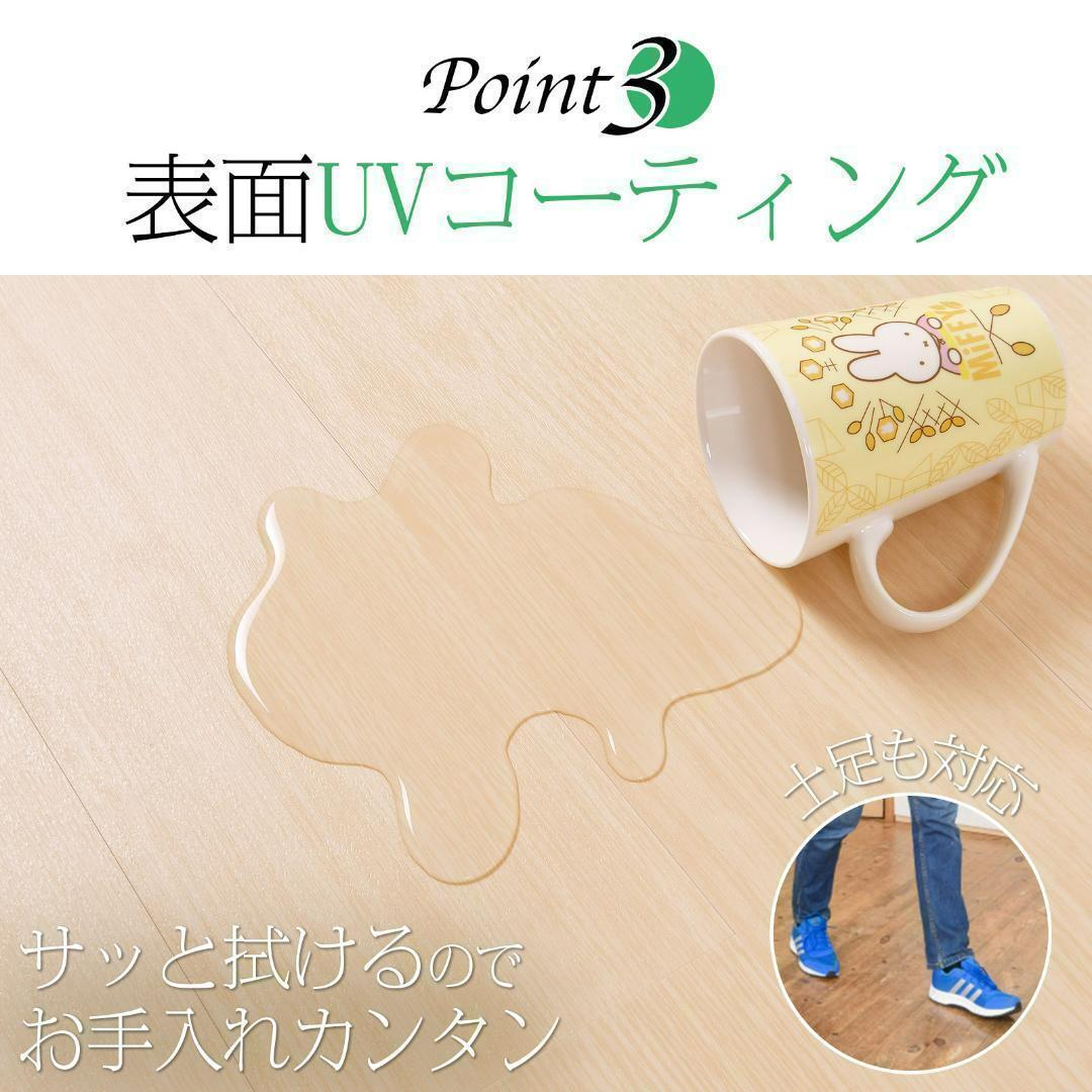 フローリングのような質感とPVC(SPC)材料特有の耐久性を持つ