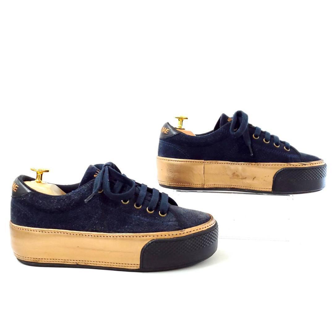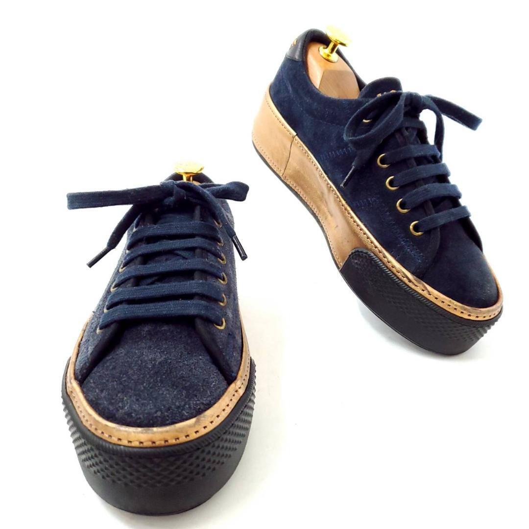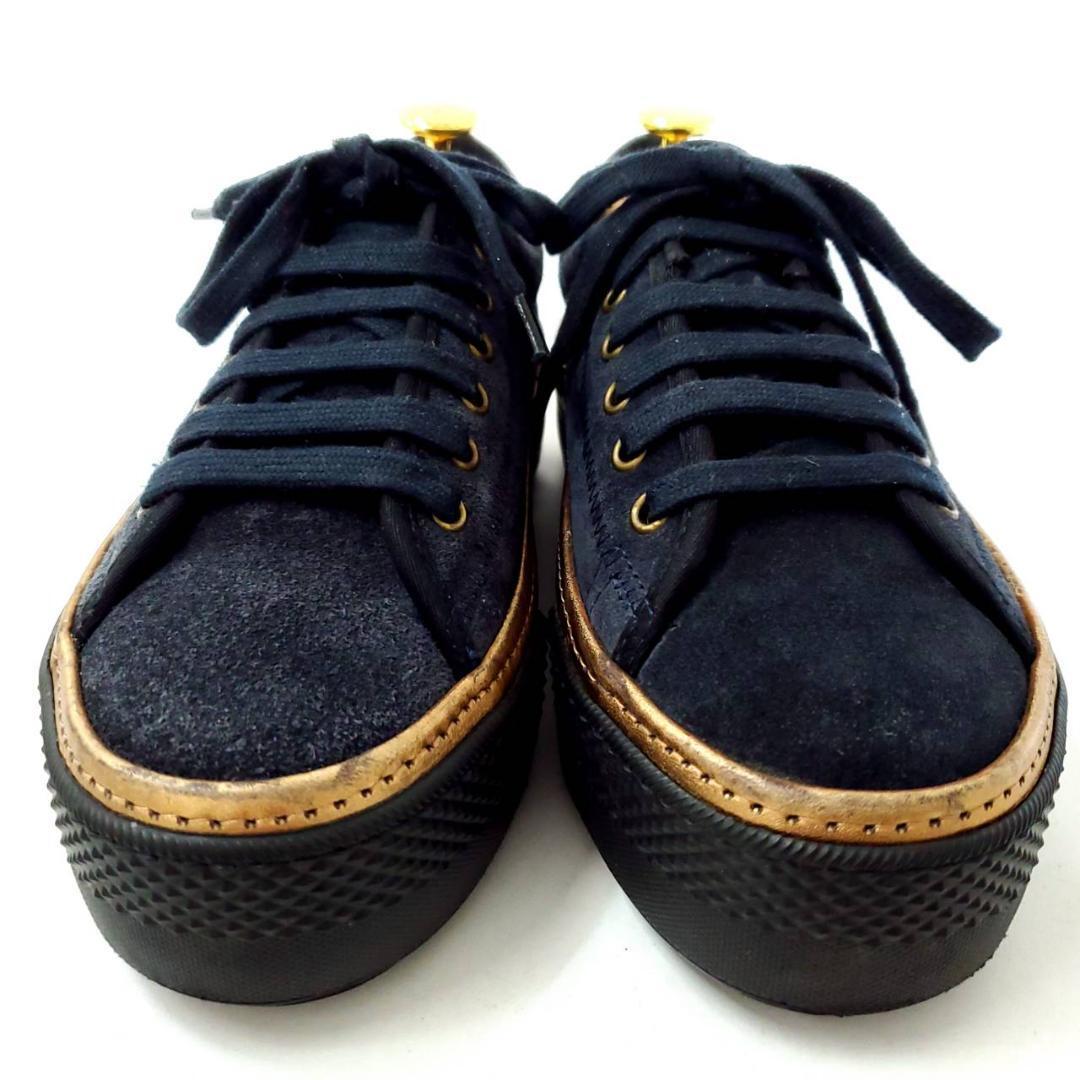 ネイビーのスエード×ゴールドの組み合わせが高級感たっぷり。