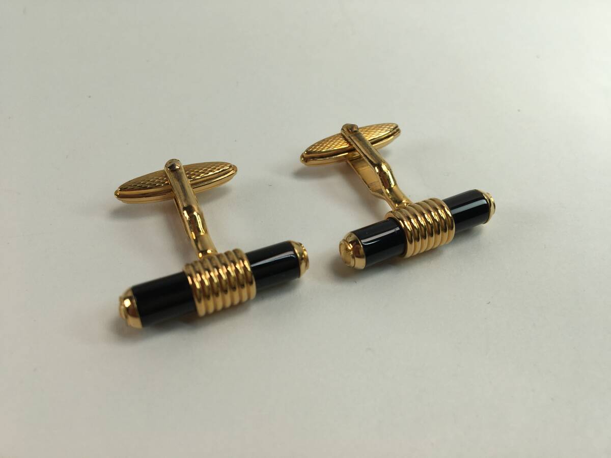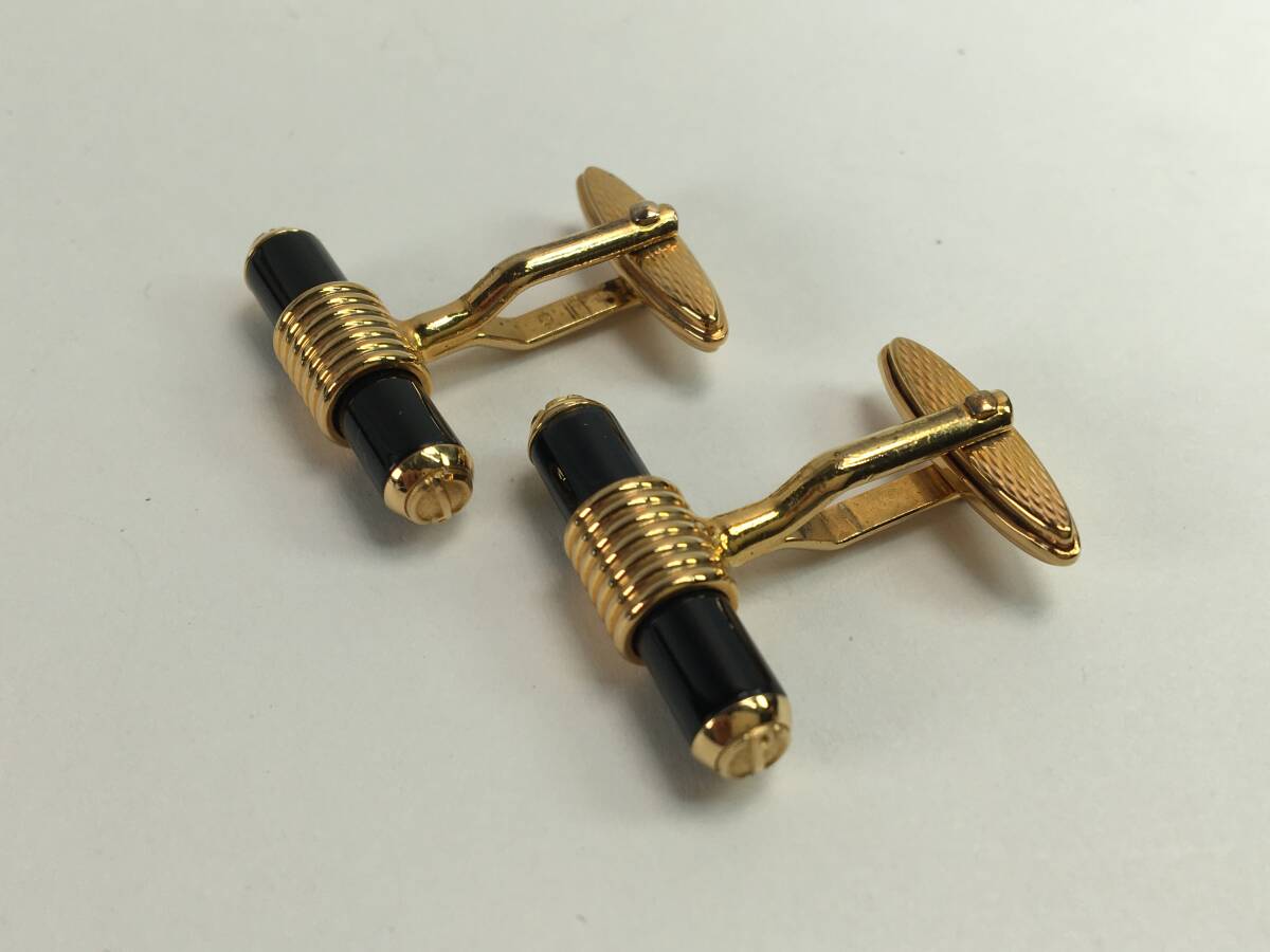 s1171 正規極美品 dunhill ダンヒル ゴールド/オニキス カフスボタン カフリンクス [パケプラ無料]
