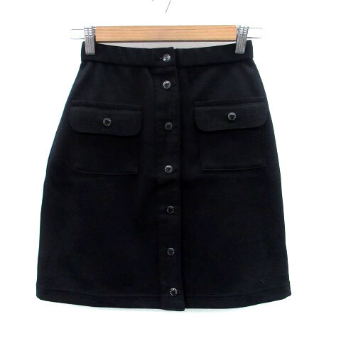 23区 オンワード樫山 台形スカート ボタンダウンスカート ミニ丈 F 黒 ブラック /HO10 レディース