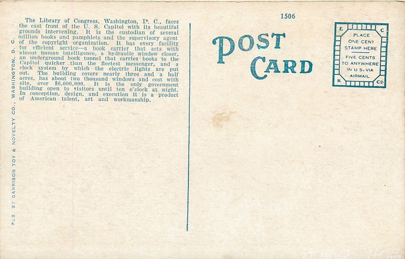 8149【絵葉書】◆ 外国製 アメリカ議会図書館、ワシントン D.C.