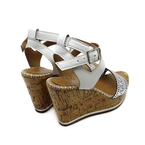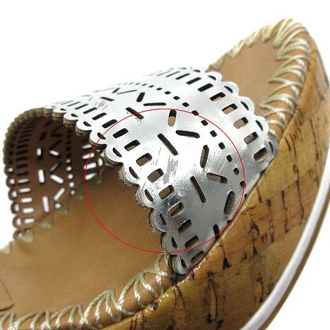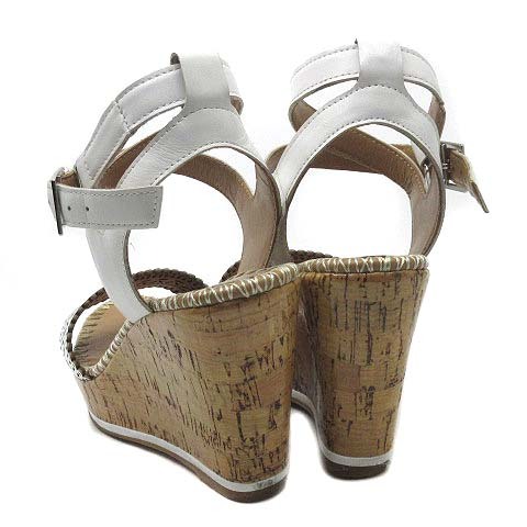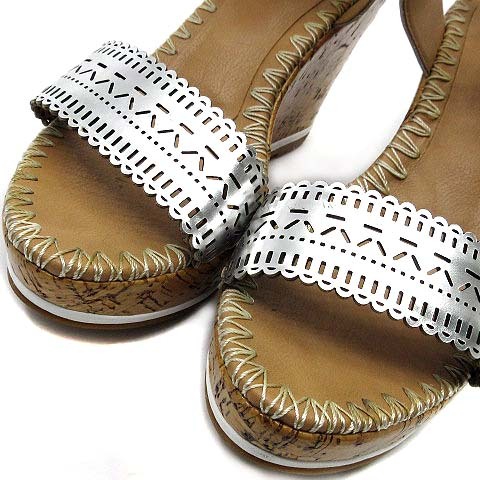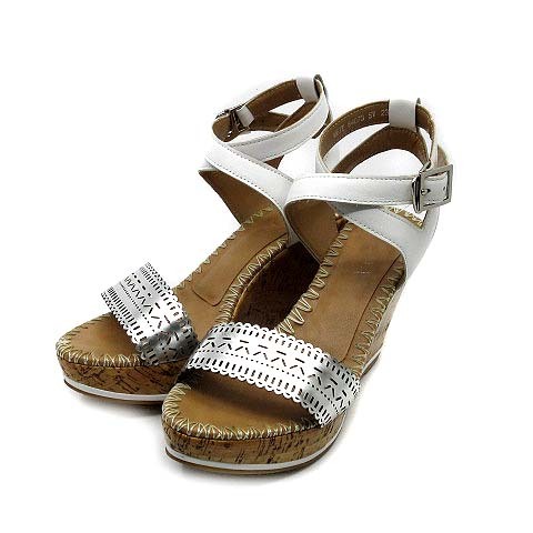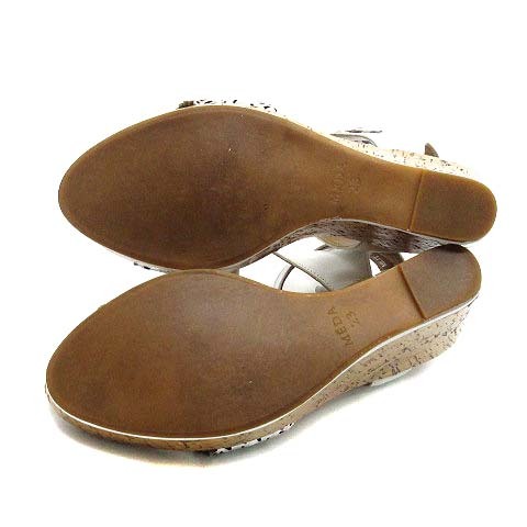 メダ MEDA アンクルクロスベルト レザー ウェッジサンダル シルバー ホワイト 23cm MEJT64073 レディース